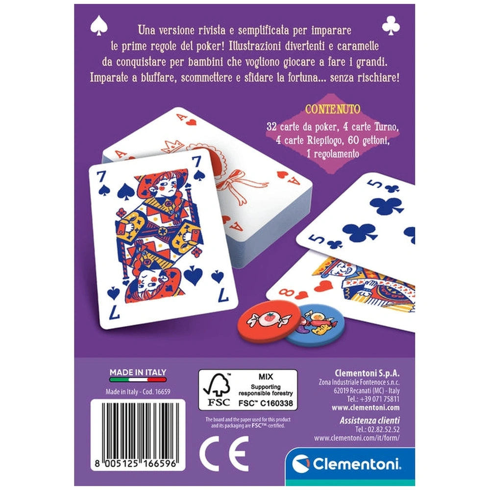 Introducing the Clementoni Pokerino Card Game, a delightful adaptation of the world’s most famous card game, specifically designed for younger players. This engaging game introduces children aged 8 and up to the classic mechanics of poker in a fun and accessible way. With its vibrant illustrations and child-friendly rules, Pokerino is not just a game; it’s an educational tool that enhances critical thinking and social skills while ensuring hours of entertainment.