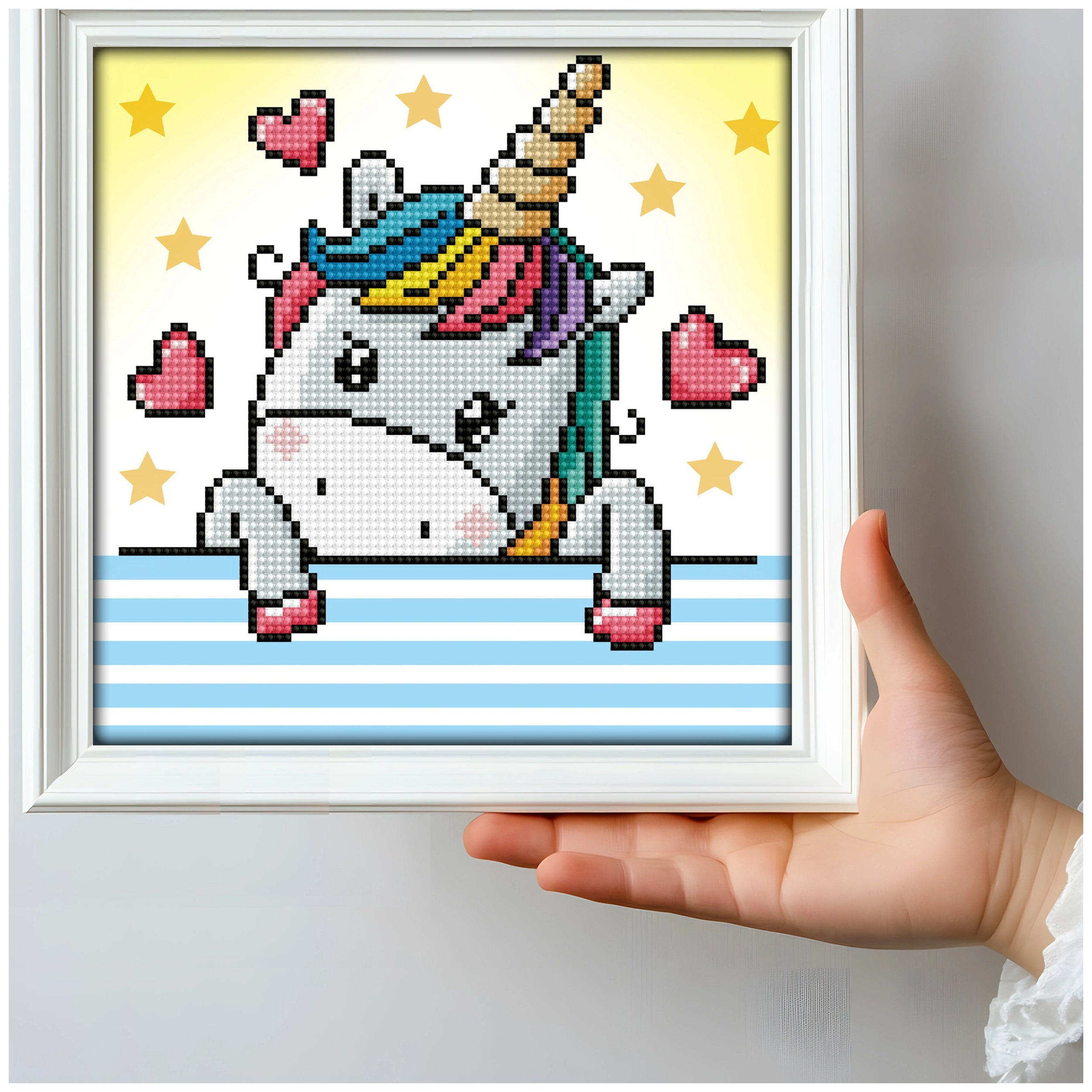 DIAMOND DOTZ - DOTZIES U Baby Diamond Painting - Kunst & Ambachten Maak kennis met de DIAMOND DOTZ - DOTZIES U Baby Diamond Painting, een heerlijke aanvulling op de wereld van kunst en ambachten die vreugde en creativiteit brengt voor zowel kinderen als volwassenen. Dit betoverende pakket bevat een speelse eenhoorn die aan het dabben is, compleet met een levendige regenboog manen tegen een dromerige aquarel achtergrond. Ontworpen voor zowel novice als ervaren knutselaars, is dit diamond painting pakket perfect voor iedereen die de fun van diamond art wil ontdekken terwijl ze een prachtig decoratiestuk creëren. Het opvallende kenmerk van dit pakket is het ontwerp met gedeeltelijke bedekking, waardoor de charmante eenhoorn centraal staat terwijl de zachte achtergrond zijn schoonheid versterkt zonder overweldigend te zijn. De ronde diamanten die in het pakket zijn inbegrepen, zijn niet alleen gemakkelijk te plaatsen, maar bieden ook een betoverende glans die het kunstwerk tot leven brengt. Met een ontwerpmaat van 23 cm x 23 cm en een aantal stippen van 2.613, is dit project zowel beheersbaar als lonend, waardoor het een ideale keuze is voor degenen die nieuw zijn in diamond painting. Knutselaars met DIAMOND DOTZ hebben een werkelijk plezierige ervaring, en dit pakket is daarop geen uitzondering. Elke verpakking is prachtig gepresenteerd in een hoogwaardige doos, waardoor het een perfect cadeau is voor eenhoornliefhebbers van alle leeftijden. Of je nu jezelf verwent of een vriend verrast, de DOTZIES U Baby Diamond Painting zal zeker vreugde brengen en creativiteit inspireren. Het speelse ontwerp en het boeiende proces maken het een fantastische manier om te ontspannen en artistieke flair te uiten. In het pakket vind je alles wat je nodig hebt om aan je diamond painting avontuur te beginnen. De premium kleur-geprinte stof is zacht en duurzaam, wat zorgt voor een soepele en stressvrije dot-ervaring. Elke echte DIAMOND DOTZ® edelsteen is schitterend facetteerd en vooraf gesorteerd op kleur, wat zorgt voor een snellere en georganiseerde knutselervaring. De meegeleverde knutseltray houdt je diamanten netjes geordend, terwijl de stylus met een zachte grip ervoor zorgt dat je urenlang kunt dotten zonder handvermoeidheid. Bovendien vereenvoudigt de wax caddy het oppakken van de diamanten, waardoor het nog gemakkelijker wordt om je meesterwerk te creëren. Volledige picturale instructies begeleiden je stap voor stap, zodat zelfs beginners het proces met gemak kunnen navigeren. Deze uitgebreide aanpak van knutselen maakt de DOTZIES U Baby Diamond Painting niet alleen een project, maar een heerlijke ervaring die creativiteit en ontspanning bevordert. Mis de kans niet om je eigen schitterende eenhoorn meesterwerk te creëren. Bestel vandaag nog je DIAMOND DOTZ - DOTZIES U Baby Diamond Painting pakket en duik in een wereld van kleur, creativiteit en plezier. Of je nu je knutselvaardigheden wilt verbeteren of het perfecte cadeau voor een geliefde zoekt, dit pakket zal zeker uren van plezier bieden en een prachtig eindproduct dat je met trots kunt tentoonstellen. Begin nu aan je diamond painting avontuur!