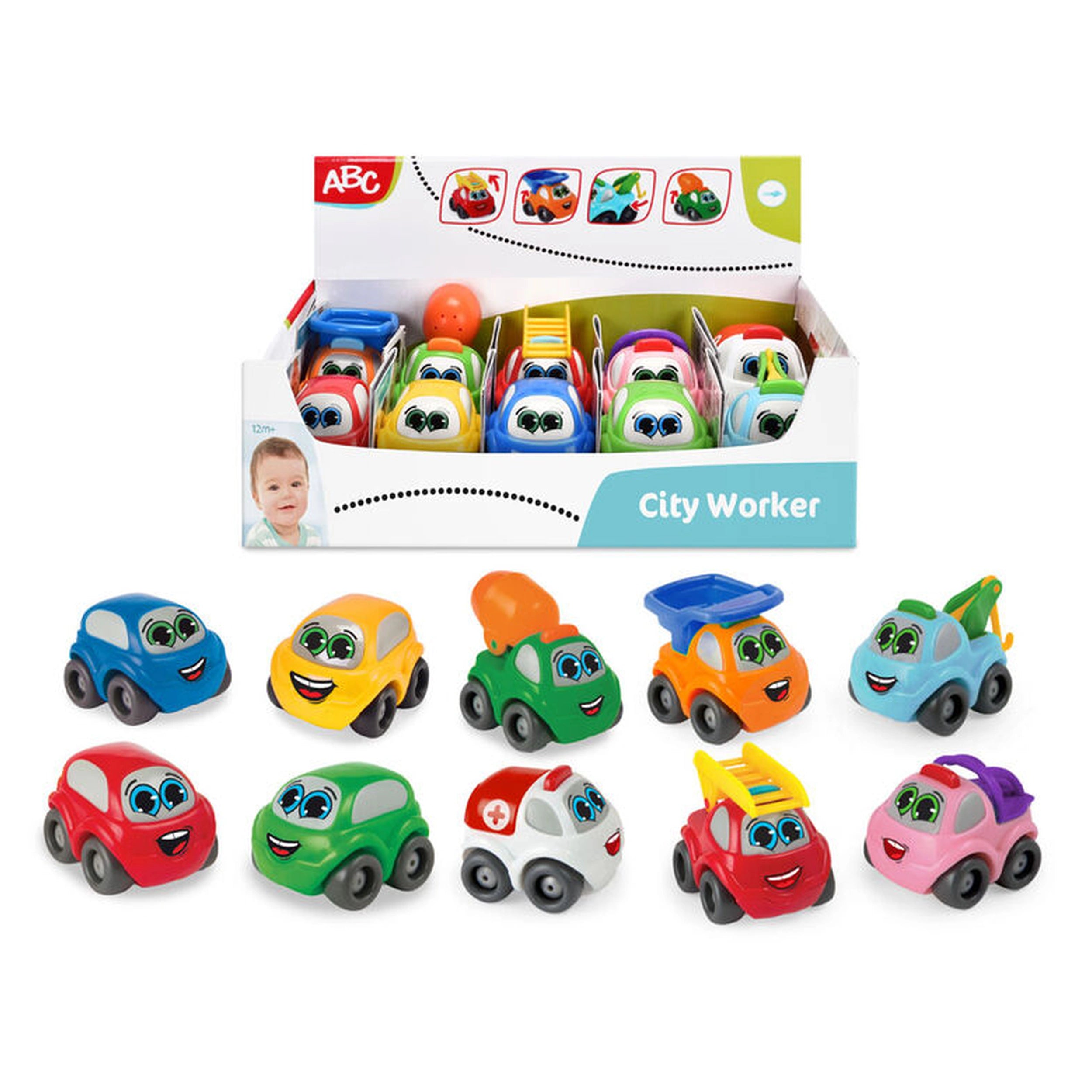 Dickie - ABC City Worker Assorted Play Vehicles Maak kennis met de Dickie - ABC City Worker Assorted Play Vehicles, een heerlijke collectie mini speelgoedauto's die speciaal zijn ontworpen voor jonge kinderen van 1 jaar en ouder. Deze charmante set bevat een verscheidenheid aan voertuigen die niet alleen vermaken, maar ook de fantasie stimuleren. Elke auto is met zorg vervaardigd, zodat ze veilig en geschikt zijn voor baby's en peuters. Met een focus op levendige kleuren en aantrekkelijke ontwerpen, zullen deze voertuigen zeker de harten van kleintjes overal veroveren. De ABC City Worker Vehicles set bevat tien unieke modellen, elk met een compacte maat van 7 cm. Deze grootte maakt ze perfect voor kleine handjes, zodat kinderen ze gemakkelijk kunnen vastpakken en manoeuvreren tijdens het spelen. De assortimentsset bevat een reeks voertuigen die essentiële stadsdiensten vertegenwoordigen, waaronder bouwvoertuigen zoals kiepwagens en betonmixers, evenals hulpvoertuigen zoals ambulances, brandweerwagens en sleepwagens. Elke auto is ontworpen om creativiteit en rollenspel-scenario's te inspireren, waardoor kinderen worden aangemoedigd om de wereld van stadswerkers te verkennen. Wat deze speelgoedauto's bijzonder maakt, zijn hun interactieve functies. Sommige modellen zijn uitgerust met bewegende delen, zoals een ladder op de brandweerwagen of een kantelbare laadruimte op de vrachtwagen. Deze elementen verbeteren niet alleen de speelervaring, maar helpen ook bij het ontwikkelen van fijne motoriek terwijl kinderen met de voertuigen spelen. De vrolijke ontwerpen, compleet met lachende gezichten, voegen een extra laag van vreugde toe, waardoor het spelen een plezierige ervaring is voor peuters. Reizen met speelgoed kan vaak een uitdaging zijn, maar de ABC City Worker Vehicles zijn ontworpen met het oog op draagbaarheid. Hun compacte formaat maakt het gemakkelijk om ze in tassen of rugzakken te pakken, waardoor ze een ideale metgezel zijn voor uitstapjes naar het park, familie-uitjes of bezoeken aan vrienden. Ouders zullen waarderen hoe deze speelgoedauto's kinderen onderweg kunnen vermaken, met eindeloze mogelijkheden voor fantasierijk spel, ongeacht de locatie. Veiligheid is een topprioriteit als het gaat om speelgoed voor jonge kinderen, en de Dickie - ABC City Worker Assorted Play Vehicles voldoen aan strenge veiligheidsnormen. Gemaakt van duurzame materialen, zijn deze speelgoedauto's gebouwd om de ontberingen van het spelen te weerstaan, terwijl ze ervoor zorgen dat ze vrij zijn van schadelijke stoffen. Ouders kunnen gerust zijn in de wetenschap dat hun kleintjes spelen met speelgoed dat niet alleen leuk is, maar ook veilig. Kortom, de Dickie - ABC City Worker Assorted Play Vehicles bieden een geweldige mix van plezier, educatie en veiligheid voor jonge kinderen. Met hun aantrekkelijke ontwerpen, interactieve functies en draagbaarheid zijn deze speelgoedauto's perfect om creativiteit en fantasierijk spel te stimuleren. Mis de kans niet om vreugde in de speeltijd van uw kind te brengen. Bestel uw set vandaag nog en kijk hoe ze spannende avonturen beleven met hun nieuwe stadswerker voertuigen!