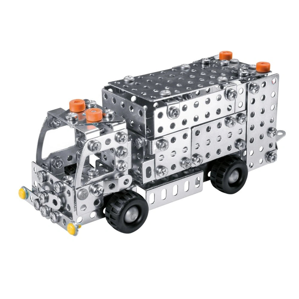 Eitech - Vuilniswagen - Bouwset Speelgoed Maak kennis met de EiTech Vuilniswagen Bouwset, een boeiend constructiespeelgoed dat is ontworpen om kinderen van 8 jaar en ouder te betrekken in de fascinerende wereld van techniek en fantasierijk spel. Deze zorgvuldig vervaardigde metalen bouwset stelt jonge bouwers in staat om hun eigen vuilniswagen in elkaar te zetten, wat hen een praktische ervaring biedt die niet alleen vermaakt, maar ook onderwijst. Met zijn realistische ontwerp en functionele kenmerken is deze set perfect voor het stimuleren van creativiteit en probleemoplossende vaardigheden bij opkomende ingenieurs. De EiTech C281 Vuilniswagen is uitgerust met een handmatige kantelfunctie, waarmee kinderen het proces van afvalinzameling kunnen simuleren na de montage. Deze interactieve functie verbetert de speelervaring, waardoor het authentiek en boeiend aanvoelt. De echte profielbanden en de hoogwaardige afwerking van de vrachtwagen zorgen voor duurzaamheid, waardoor urenlang creatief rollenspel mogelijk is, lang nadat de eerste constructie is voltooid. Kinderen kunnen zich onderdompelen in de rol van alledaagse helden en leren over het belang van netheid en teamwork op een leuke en interactieve manier. Met in totaal 280 onderdelen daagt deze geavanceerde bouwset jonge bouwers uit om hun motorische vaardigheden en cognitieve vermogens te ontwikkelen. De bijgeleverde geïllustreerde montage-instructies begeleiden hen door het bouwproces, waardoor het toegankelijk maar stimulerend is. De set wordt ook geleverd met de benodigde gereedschappen, zodat kinderen alles hebben wat ze nodig hebben om hun vuilniswagen tot leven te brengen. Deze praktische ervaring bevordert niet alleen een gevoel van voldoening, maar moedigt ook kritisch denken aan terwijl ze het montageproces doorlopen. Veiligheid en kwaliteit zijn van het grootste belang bij het EiTech-merk, aangezien alle producten in Duitsland worden vervaardigd met niet-giftige materialen. De C281 Vuilniswagen voldoet aan strenge veiligheidsnormen, waardoor het een betrouwbare keuze is voor ouders en opvoeders. De erkenning als waardevol educatief hulpmiddel in scholen onderstreept verder de kwaliteit en effectiviteit in het bevorderen van leren door spel. Kinderen kunnen technische concepten verkennen terwijl ze genieten van de voldoening van het bouwen van iets tastbaars en functioneels. Een van de opvallende kenmerken van de EiTech C281 Vuilniswagen is de compatibiliteit met andere EiTech metalen bouwsets. Dit opent een wereld van mogelijkheden voor creatieve constructie, waardoor kinderen verschillende sets kunnen combineren en hun fantasierijke spel kunnen uitbreiden. Of ze nu een vloot voertuigen willen bouwen of een complete stadsomgeving willen creëren, de opties zijn eindeloos. Deze veelzijdigheid verbetert niet alleen de speelervaring, maar moedigt ook samenwerkingsspel aan tussen vrienden en broers en zussen. Kortom, de EiTech Vuilniswagen Bouwset is meer dan alleen een speelgoed; het is een toegangspoort tot leren, creativiteit en plezier. Door kinderen te betrekken bij de montage en rollenspelaspecten van deze bouwset, biedt u hen een waardevolle kans om essentiële vaardigheden te ontwikkelen terwijl ze plezier hebben. Mis de kans niet om de volgende generatie ingenieurs en probleemoplossers te inspireren. Bestel vandaag nog uw EiTech C281 Vuilniswagen en zie hoe uw kind aan een opwindende ontdekkingsreis vol verbeelding begint!