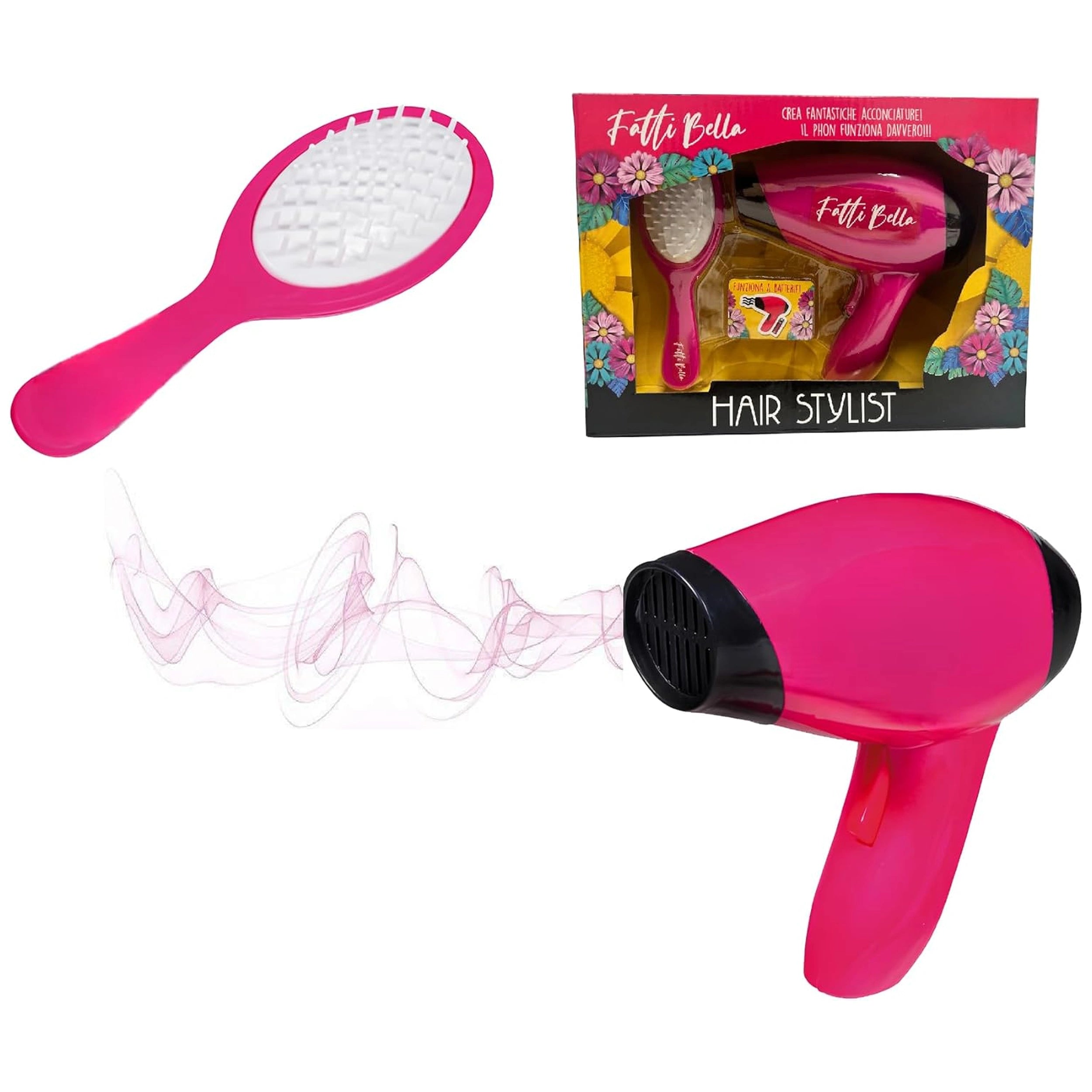Completing the set is an ergonomically designed brush, essential for detangling, styling, and creating imaginative hairstyles. The Fatti Bella line encourages creative development, fostering storytelling, social skills, and interactive play. As children manipulate the hairdryer and brush, they also refine their fine motor skills and coordination, making this set not only fun but educational as well.