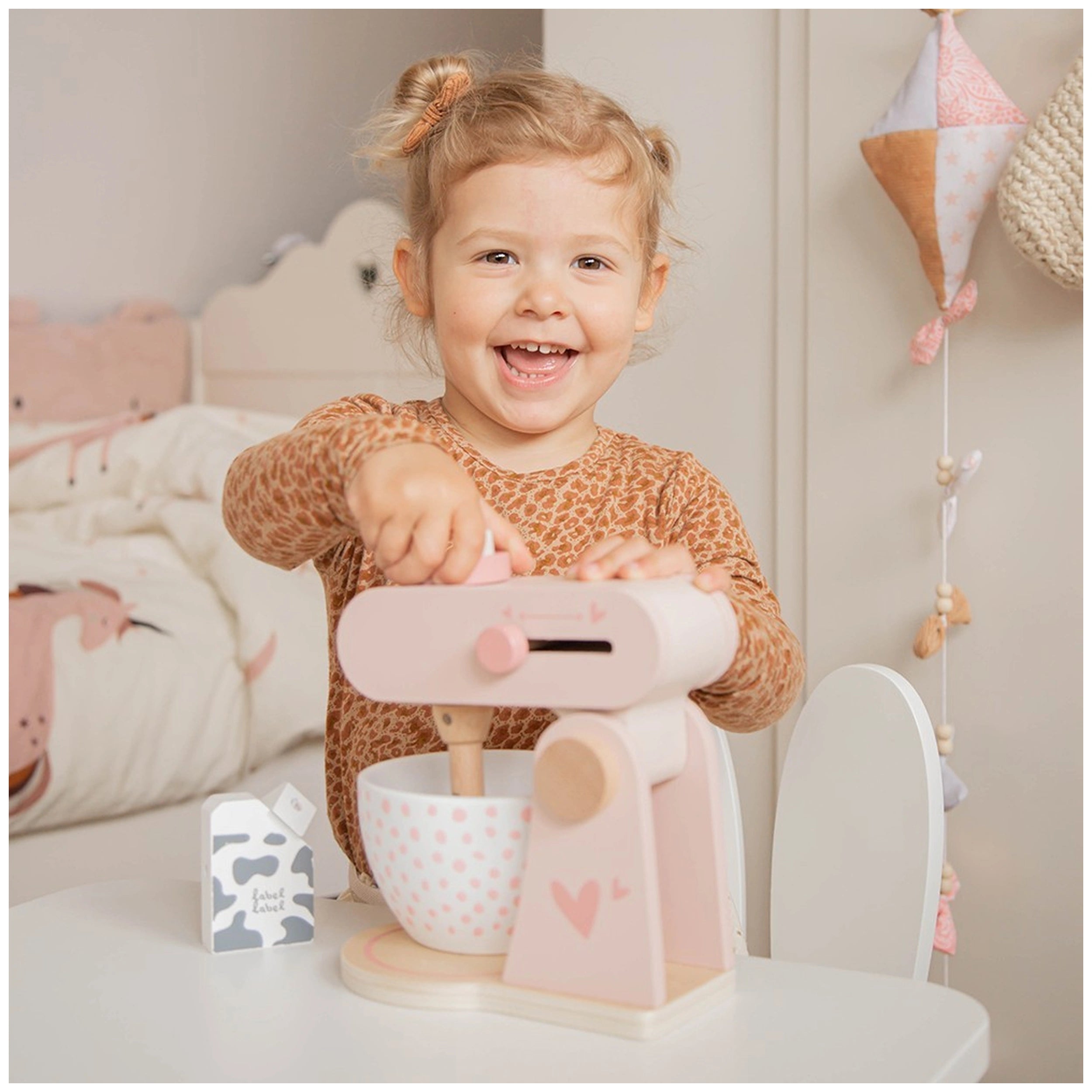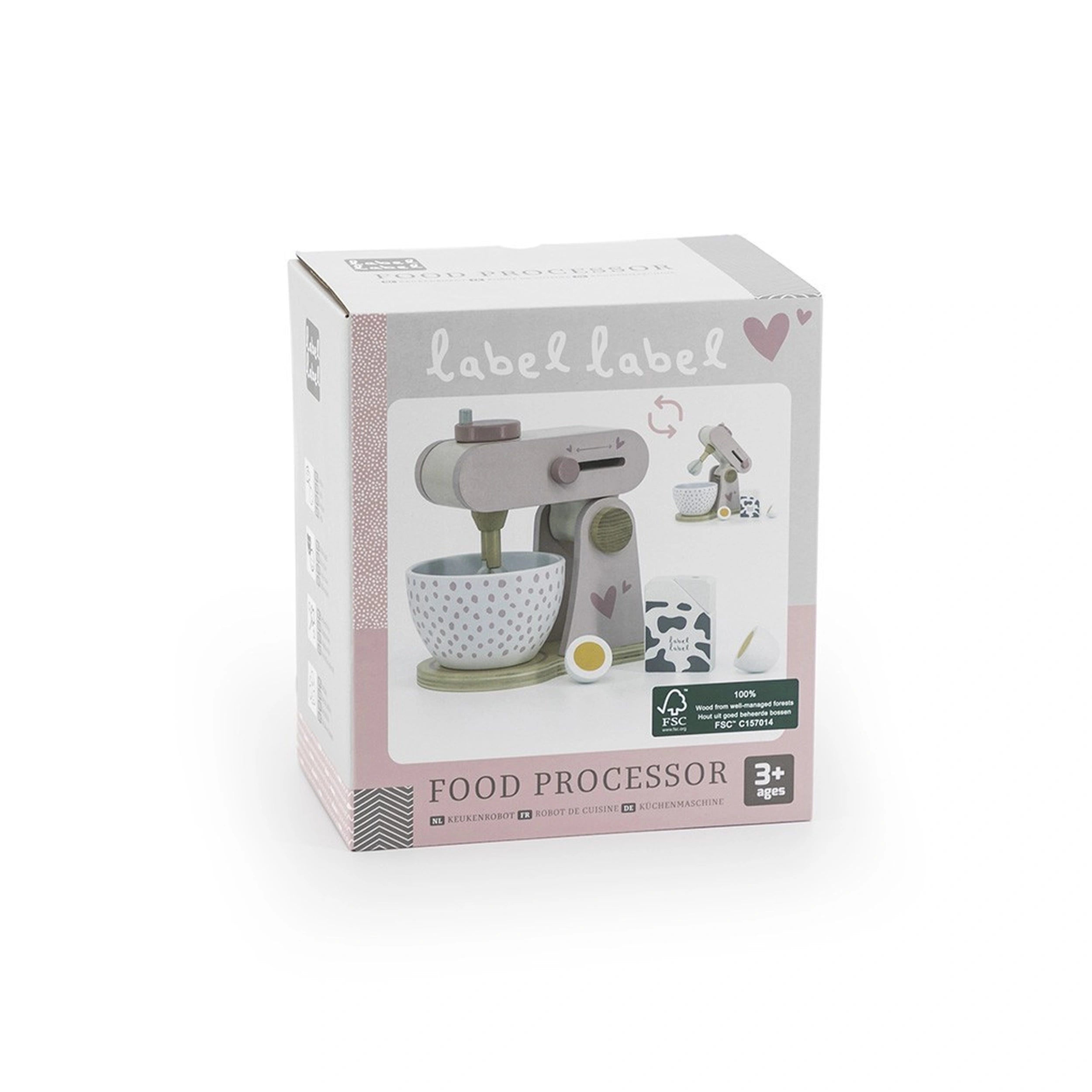 Introducing the Label-Label Food Processor in Pink, a delightful addition to your child's playtime that encourages creativity and imaginative role-playing. This charming kitchen robot is designed specifically for little chefs who aspire to whip up their own delicious treats, from cookies to cakes. Crafted from high-quality FSC certified wood, this food processor not only meets safety standards but also promotes sustainable play. The vibrant colors and symbols are applied using child-friendly water-based paint, ensuring a safe and engaging experience for your little ones.