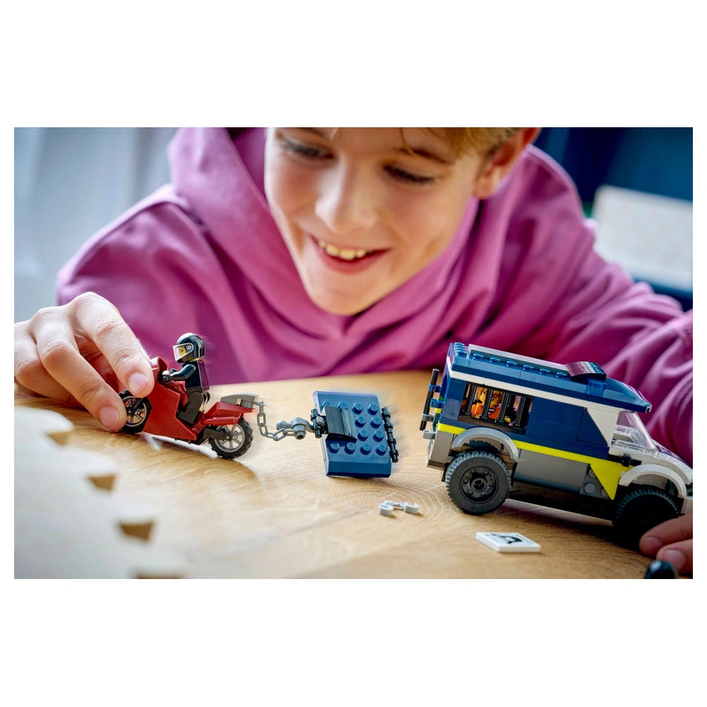 LEGO - City Politie Gevangenen Transportbus - Bouwset Speelgoed Maak kennis met de LEGO® City Politie Gevangenen Transportbus (60479), een spannende bouwset ontworpen voor jonge bouwers van 6 jaar en ouder. Deze boeiende speelset nodigt kinderen uit in de opwindende wereld van wetshandhaving, waar ze zich kunnen onderdompelen in fantasierijke avonturen vol actie en creativiteit. Met zijn gedetailleerde ontwerp en interactieve functies is deze politie transportbus perfect voor kinderen die houden van rollenspellen en verhalen vertellen. De LEGO City Politie Gevangenen Transportbus beschikt over een zorgvuldig vervaardigde bestuurderscabine en een veilige gevangeniscel die plaats biedt aan twee criminelen. Deze set bevat niet alleen een politieagent minifiguur, maar ook twee crimineel minifiguren, wat zorgt voor dynamische speelscenario's. Kinderen kunnen deelnemen aan epische ontsnappingen, waarbij ze de meegeleverde motorfiets gebruiken die is uitgerust met een ketting en haak om de gevangenisceldeur open te trekken, waardoor spannende ontsnappingssequenties ontstaan die hun verbeelding prikkelen. Deze bouwkit bestaat uit 198 onderdelen, wat zorgt voor een leuke en belonende bouwervaring. De LEGO Builder-app verbetert deze ervaring door intuïtieve, stapsgewijze digitale instructies te bieden waarmee kinderen kunnen inzoomen, modellen in 3D kunnen draaien en hun voortgang kunnen volgen. Deze functie zorgt ervoor dat jonge bouwers hun politie transportbus met vertrouwen kunnen bouwen, waardoor het een ideale keuze is voor zowel novice als ervaren LEGO-liefhebbers. De LEGO City Politie Gevangenen Transportbus is niet zomaar een speelgoed; het is een toegangspoort tot creativiteit en verhalen vertellen. Kinderen kunnen deze set combineren met andere LEGO City noodvoertuigen om hun speelmogelijkheden uit te breiden. Of het nu een verjaardagscadeau of een verrassingscadeau is, deze set zal zeker elk kind blij maken dat houdt van hands-on spel en fantasierijke avonturen. Ontworpen voor kinderen die van politie-thema speelgoed houden, moedigt deze set rollenspel en teamwork aan. Kinderen kunnen hun eigen verhalen creëren, of ze nu criminelen achtervolgen of gedurfde ontsnappingen plannen. De veelzijdigheid van deze set maakt eindeloze scenario's mogelijk, waardoor het een waardevolle aanvulling is op elke LEGO-collectie. In een wereld waar creativiteit geen grenzen kent, steekt de LEGO City Politie Gevangenen Transportbus eruit als een fantastische keuze voor jonge bouwers. Mis de kans niet om de verbeelding en probleemoplossende vaardigheden van uw kind te inspireren. Bestel vandaag nog de LEGO® City Politie Gevangenen Transportbus en kijk hoe ze zich onderdompelen in een wereld van avontuur en plezier!