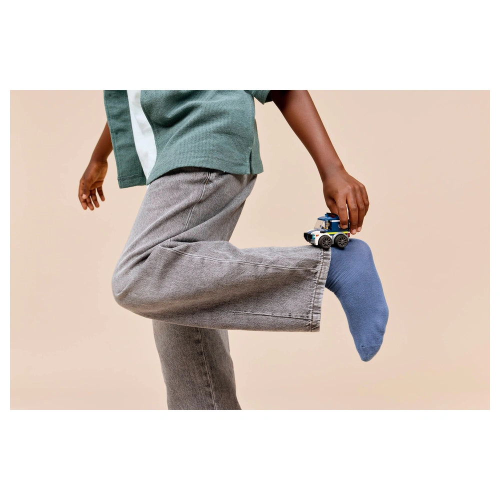 LEGO - City Rides Politie Truck - Bouwset Speelgoed Maak kennis met de LEGO® City Rides – Politie Truck (60481), een spannende bouwset ontworpen om de verbeelding van jonge bouwers van 5 jaar en ouder te prikkelen. Dit boeiende speelgoed biedt een unieke kans voor kinderen om in de opwindende wereld van LEGO City te duiken, waar ze hun eigen actievolle politie-avonturen kunnen creëren. Met zijn compacte formaat en levendige ontwerp is deze politie truck niet zomaar een speelgoed; het is een toegangspoort tot eindeloze uren creatief spel. De LEGO City Rides – Politie Truck set bevat een zorgvuldig ontworpen mini politie truck die alle essentiële elementen voor een realistische ervaring omvat. Van de coole velgen en lage rubberen banden tot de duwbumper, gevangenisroosters en speelgoed nooddienstenlichten, elk detail is vervaardigd om het vertellen van fantasieverhalen te verbeteren. De set wordt ook geleverd met een junior politieagent minifiguur, perfect van formaat om in de bestuurderscabine te passen, waardoor het voor kinderen gemakkelijk is om op spannende missies te gaan om de slechteriken te vangen. Het bouwen van deze politie truck is een fluitje van een cent, dankzij het eenvoudige assemblageproces. De set bevat 71 onderdelen, waardoor jonge bouwers hun fijne motoriek kunnen ontwikkelen terwijl ze genieten van praktisch spel. De LEGO Builder app verrijkt de bouwervaring verder door intuïtieve 3D-instructies te bieden waarmee kinderen kunnen inzoomen, draaien en hun voortgang kunnen volgen terwijl ze hun nieuwe speelgoed bouwen. Deze innovatieve aanpak maakt het bouwen niet alleen leuk, maar bevordert ook het zelfvertrouwen en de onafhankelijkheid van jonge creatievelingen. De LEGO City Rides – Politie Truck is een ideaal cadeau voor verjaardagen, feestdagen of gewoon zomaar. Het compacte formaat maakt het een perfect speelgoed om mee te nemen, zodat het plezier overal kan doorgaan waar kinderen gaan. Of ze nu thuis spelen of onderweg zijn, deze politie truck is ontworpen om boeiende speelervaringen te bieden die creativiteit en probleemoplossende vaardigheden stimuleren. Als onderdeel van de LEGO City Rides collectie kan deze politie truck gemakkelijk worden gecombineerd met andere LEGO City sets (apart verkocht) om de avonturen nog verder uit te breiden. Kinderen kunnen een bruisende stadsomgeving creëren, compleet met politieachtervolgingen en reddingsmissies, waardoor hun speeltijd wordt verrijkt met nieuwe scenario's en personages. Deze veelzijdigheid maakt de LEGO City Rides – Politie Truck niet alleen een speelgoed, maar een waardevolle aanvulling op elke LEGO-collectie. Mis de kans niet om de verbeelding en creativiteit van uw kind te inspireren met de LEGO® City Rides – Politie Truck (60481). Bestel nu en kijk hoe ze op spannende avonturen gaan, hun eigen verhalen bouwen en essentiële vaardigheden ontwikkelen onderweg. Dit is meer dan alleen een speelgoed; het is een uitnodiging om te verkennen, creëren en spelen!