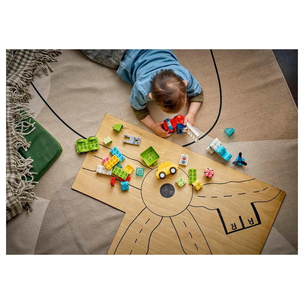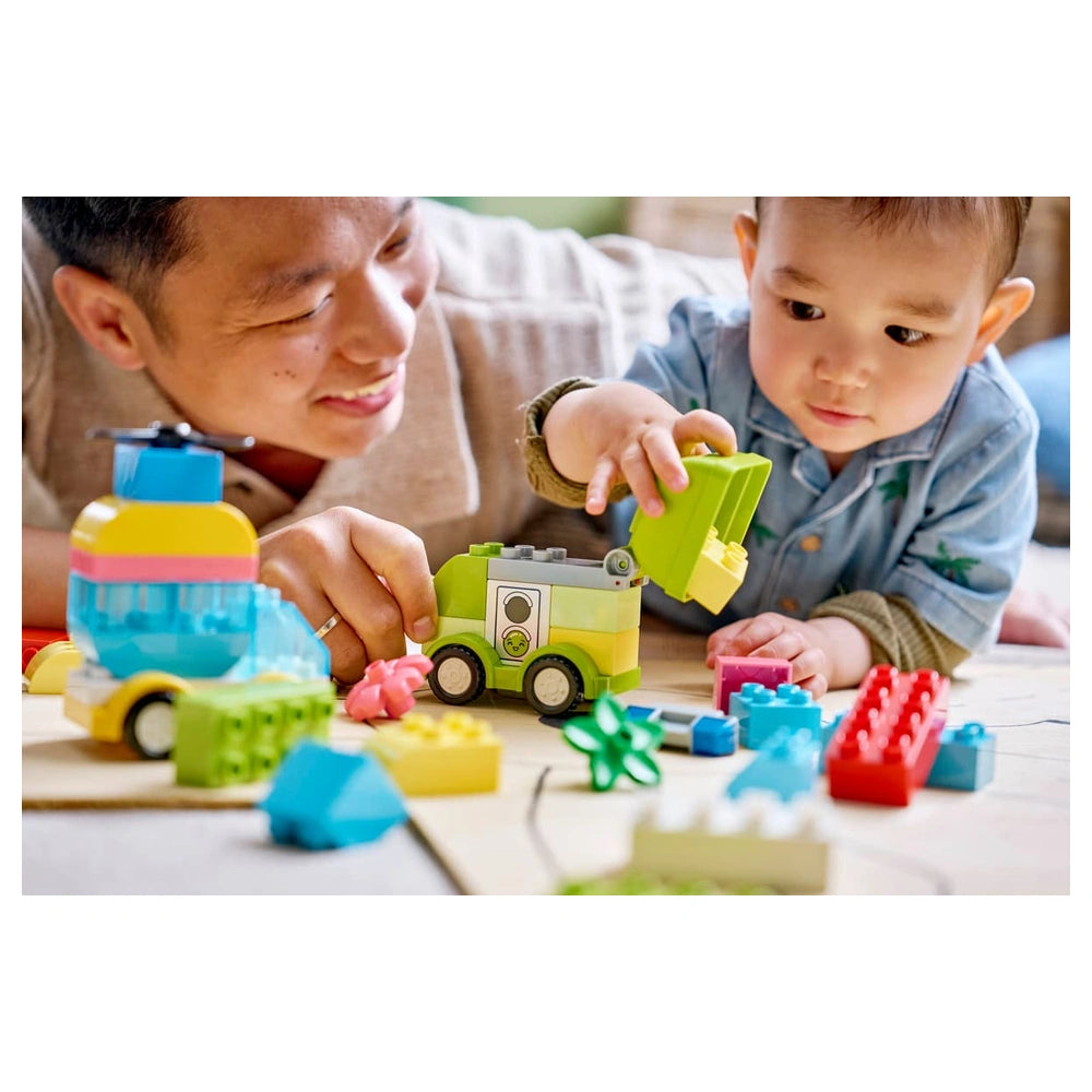 LEGO - DUPLO Creatieve Voertuigen - Constructiespeelgoed Maak kennis met de LEGO® DUPLO® Mijn Eerste Creatieve Voertuigen (10474) constructieset, een heerlijk en boeiend speelgoed dat is ontworpen om de verbeelding van peuters vanaf 18 maanden en ouder te prikkelen. Deze levendige set is niet zomaar een verzameling blokken; het is een toegangspoort tot onbeperkte creativiteit, waardoor jonge bouwers hun artistieke potentieel kunnen verkennen terwijl ze essentiële vaardigheden ontwikkelen. Met 42 onderdelen, waaronder drie chassis, biedt deze set eindeloze mogelijkheden voor fantasierijk spel en verhalen vertellen. De LEGO DUPLO Mijn Eerste Creatieve Voertuigen set bevat een verscheidenheid aan hoofdmodellen die zeker de aandacht van de kleintjes zullen trekken. Kinderen kunnen een helikopter met een draaiende rotor, een kiepwagen met een kantelbed, een brandweerwagen met een scharnierende ladder en een charmante gezinsauto bouwen. Elk voertuig is ontworpen om gemakkelijk door kleine handen te worden gemanipuleerd, wat de fijne motoriek en hand-oogcoördinatie bevordert terwijl peuters bezig zijn met het bouwen en opnieuw opbouwen van hun creaties. De eenvoud van het ontwerp moedigt kinderen aan om te experimenteren en innoveren, waardoor elke speelsessie een uniek avontuur wordt. Een van de opvallende kenmerken van deze constructieset is de nadruk op creatief bouwen. Terwijl peuters de blokken van de hoofdmodellen uit elkaar halen, worden ze aangemoedigd om buiten de gebaande paden te denken en stukken op nieuwe en verrassende manieren te combineren. Dit bevordert niet alleen creativiteit, maar verbetert ook de probleemoplossende vaardigheden terwijl kinderen de uitdagingen van het bouwen van hun eigen voertuigen aangaan. Of het nu gaat om het transformeren van een kleine auto in een politievoertuig of het creëren van een fantasierijke dubbeldekkerbus, de mogelijkheden zijn slechts beperkt door hun verbeelding. De LEGO DUPLO Mijn Eerste Creatieve Voertuigen set is meer dan alleen speelgoed; het is een educatief hulpmiddel dat de focus en doorzettingsvermogen scherpt. Terwijl kinderen werken aan het creëren van hun perfecte voertuig, leren ze de waarde van geduld en vastberadenheid. Deze set is ontworpen om mee te groeien met uw kind, en biedt een basis voor toekomstige bouwervaringen en moedigt een levenslange liefde voor creativiteit en constructie aan. Veiligheid is een topprioriteit voor LEGO, en deze set is rigoureus getest om aan de hoogste veiligheidsnormen te voldoen. Ouders kunnen gerust zijn, wetende dat de kleine onderdelen speciaal zijn ontworpen voor peuters, wat zorgt voor een veilige en plezierige speelervaring. Dit maakt de LEGO DUPLO Mijn Eerste Creatieve Voertuigen set een ideaal cadeau voor jonge kinderen, dat vreugde en creativiteit in elke speelsessie opwekt. Kortom, de LEGO® DUPLO® Mijn Eerste Creatieve Voertuigen (10474) constructieset is een must-have voor elke speelgoedcollectie van peuters. Met zijn boeiende kenmerken, educatieve voordelen en nadruk op creativiteit, is deze set perfect voor het koesteren van de passies van nieuwsgierige jonge geesten. Mis de kans niet om de verbeelding van uw kind te inspireren—bestel vandaag nog de LEGO DUPLO Mijn Eerste Creatieve Voertuigen set en kijk hoe ze aan talloze avonturen van creativiteit en plezier beginnen!