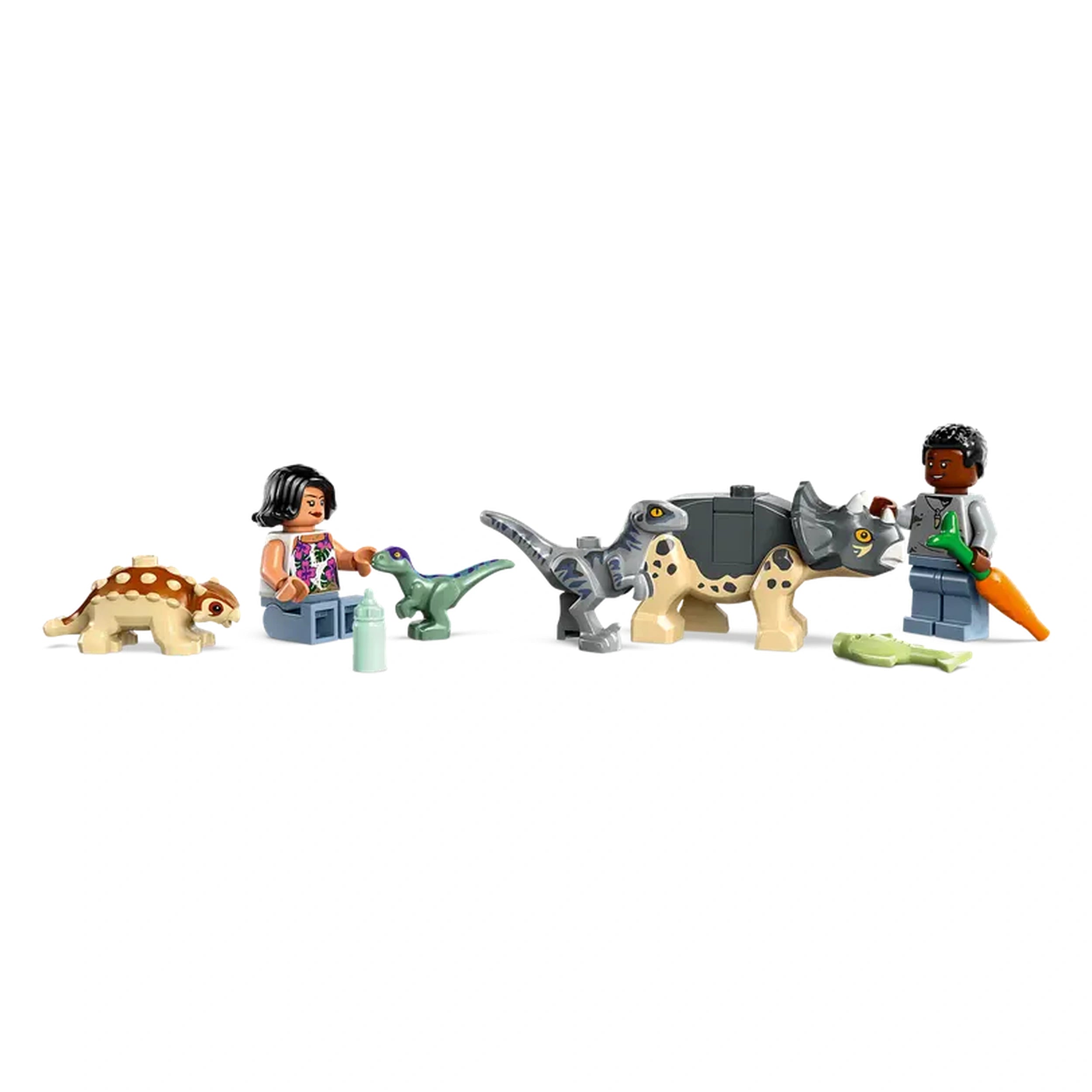 Children will delight in the five adorable dinosaur figures included in the set: a baby Ankylosaurus, a baby Triceratops, a baby Velociraptor, a small Velociraptor, and an adult Pteranodon. Additionally, the set comes with two minifigures, Darius and Sammy, who are ready to embark on thrilling adventures in the world of dinosaurs. The combination of these figures encourages imaginative role-play, allowing kids to create their own stories while caring for and protecting the baby dinosaurs.