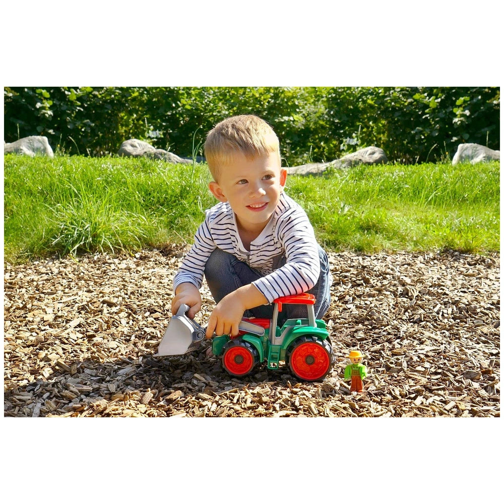 Lena - TRUXX Tractor 34 cm - Speelvoertuigen Maak kennis met de Lena TRUXX Tractor, een robuust en boeiend speelvoertuig ontworpen voor kinderen van twee jaar en ouder. Deze levendig groene en rode tractor is 34 cm lang en perfect voor kleine handjes die de wereld van fantasierijk spel willen verkennen. Gemaakt van duurzame materialen, is de Lena TRUXX Tractor gebouwd om de uitdagingen van buitenavonturen en binnenpret te weerstaan, waardoor het een essentiële aanvulling is op de speelgoedcollectie van elk kind. De Lena TRUXX Tractor is uitgerust met slijtvast rubberen banden op gegalvaniseerde stalen assen, wat zorgt voor uitstekende grip op verschillende oppervlakken. Of uw kind nu door de achtertuin, het strand of een zandbak navigeert, deze tractor is ontworpen om ladingen zand, grind, aarde of zelfs kleine speelgoedjes veilig en stevig te vervoeren. De stevige constructie garandeert dat hij de eisen van actief spel aankan, wat zorgt voor eindeloze uren vermaak. Voorzien van een voorlader en een gebruiksvriendelijke handgreep, stelt de tractor kinderen in staat om realistische boerderijactiviteiten uit te voeren. Het open cabineontwerp stimuleert fantasierijk rollenspel, waardoor kinderen zich kunnen voorstellen als boeren of bouwvakkers. Deze interactieve functie verbetert niet alleen de speeltijd, maar bevordert ook de fijne motoriek terwijl kinderen leren de schep te manoeuvreren en hun lading te vervoeren. Veiligheid staat voorop, en de Lena TRUXX Tractor voldoet aan strenge veiligheidsnormen. Hij is TÜV-gecertificeerd, wat garandeert dat hij voldoet aan hoge kwaliteitsnormen voor speelgoed voor kinderen. Ouders kunnen gerust zijn, wetende dat hun kleintjes spelen met een product dat zowel veilig als betrouwbaar is. De tractor is ook gemaakt in Europa, wat een toewijding aan kwaliteitsvakmanschap weerspiegelt. De levendige kleuren van de Lena TRUXX Tractor zullen zeker de aandacht van jonge kinderen trekken, waardoor het een aantrekkelijk cadeau is voor verjaardagen, feestdagen of speciale gelegenheden. De veelzijdigheid maakt het mogelijk om zowel binnen als buiten te spelen, waardoor het een fantastische keuze is voor elke omgeving. De tractor is niet zomaar een speelgoed; het is een toegangspoort tot fantasierijk spel dat creativiteit en verkenning bevordert. Mis de kans niet om de speeltijd van uw kind te verrijken met de Lena TRUXX Tractor. Dit boeiende en duurzame speelgoed is perfect om creativiteit aan te wakkeren en buitenactiviteiten aan te moedigen. Bestel nu en zie de verbeelding van uw kind de lucht in schieten terwijl ze spannende avonturen beleven met hun nieuwe favoriete speelvoertuig!
