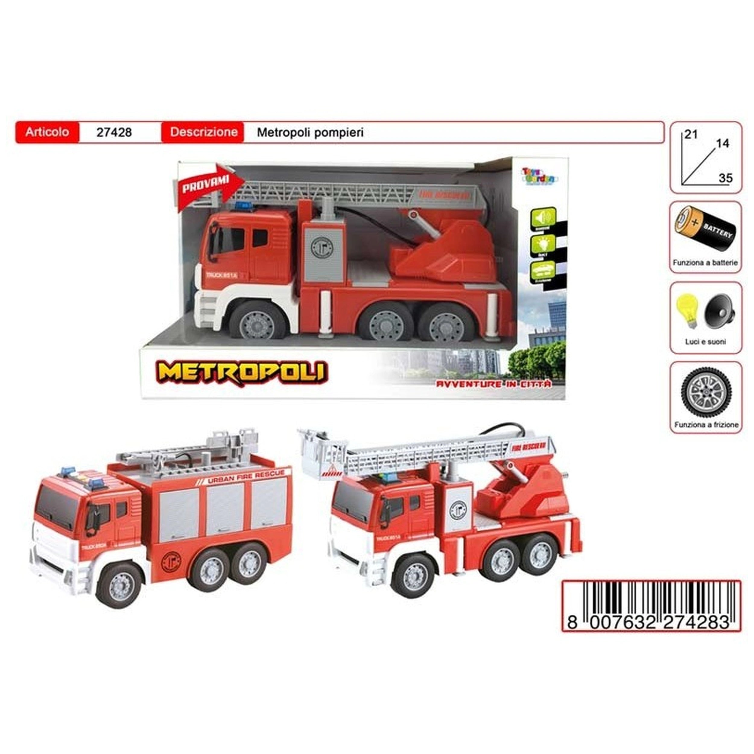 Don't miss the chance to equip your child with the ultimate rescue vehicle. The Metropoli Adventure in the City Large Fire Engine Toy is not just a toy; it's an invitation to explore, learn, and grow through imaginative play. Order now and watch as your child's creativity and heroic spirit come to life!