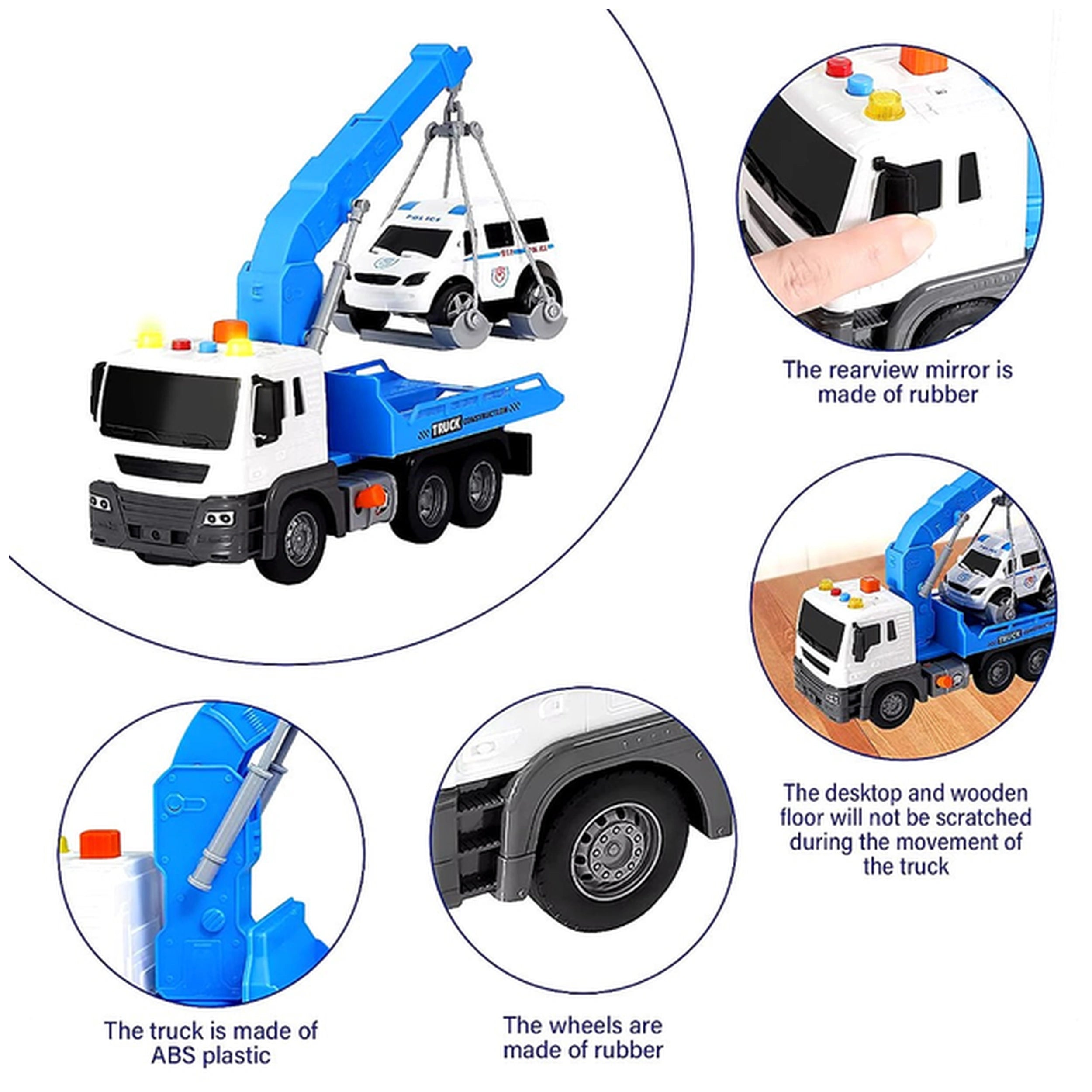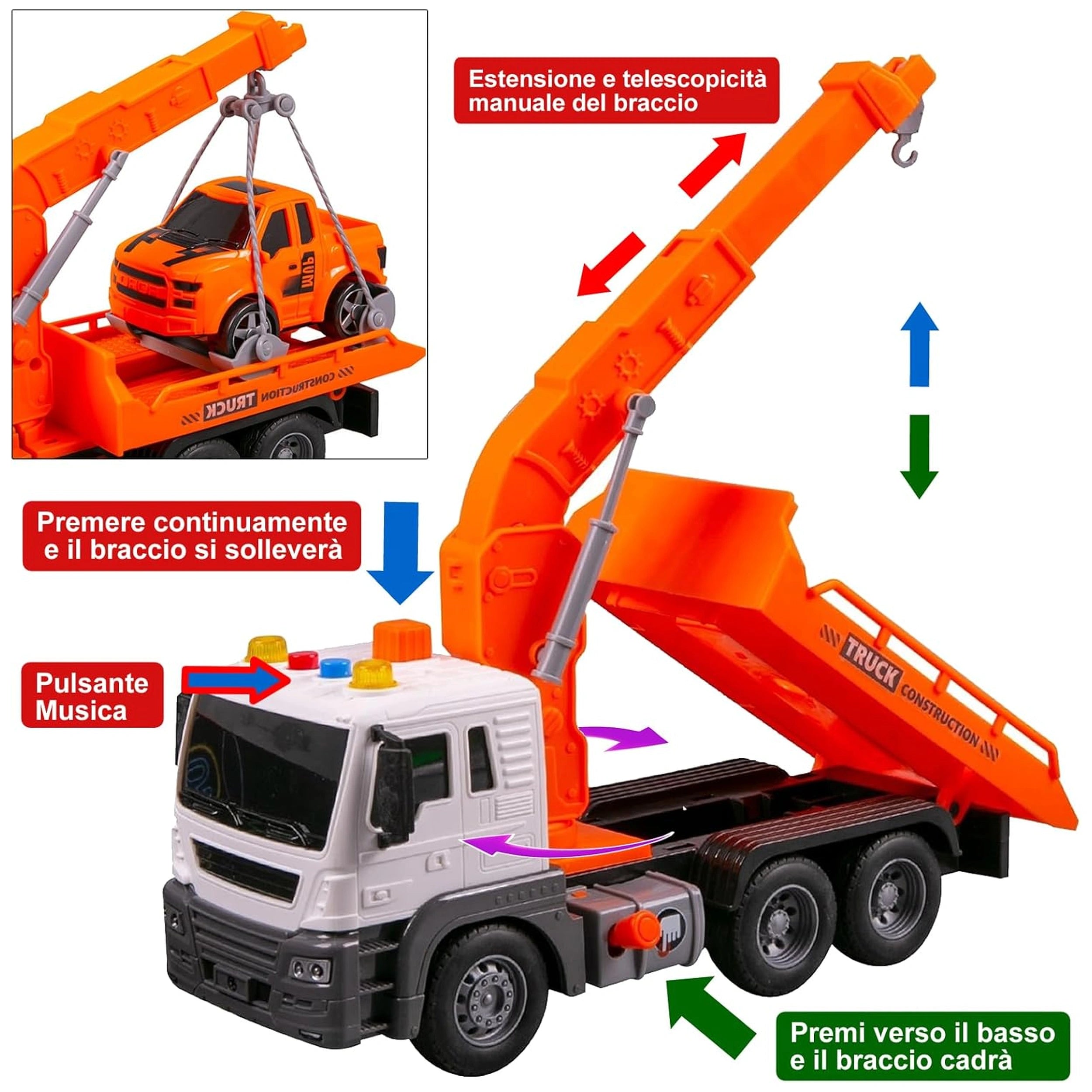 Metropoli - Avontuur in de Stad Sleepwagen Set - Speelvoertuigen Maak kennis met de Metropoli Avontuur in de Stad Sleepwagen Set, een spannende aanvulling op de speelgoedcollectie van elk kind die de opwinding van stedelijke reddingsoperaties rechtstreeks naar hun speelkamer brengt. Dit grote bergingsvoertuig is ontworpen voor jonge avonturiers die dromen van het leiden van hun eigen stadsreddingsmissies. Met indrukwekkende kenmerken, waaronder lichten, geluiden en een beweegbare kraan, is deze sleepwagen niet zomaar een speelgoed; het is een uitnodiging tot fantasierijk spel en probleemoplossing. De Metropoli Sleepwagen maakt deel uit van de dynamische "Metropoli" serie, die de nadruk legt op realistische details en interactieve functies. Kinderen kunnen hun eigen reddingsscenario's naspelen met de robuuste sleepwagen, die is uitgerust met een handmatig bediende kraanarm en haak. Dit stelt hen in staat om de meegeleverde die-cast auto op te tillen en vast te zetten, wat echte reddingsoperaties simuleert en hen waardevolle vaardigheden in ladingbeheer en berging bijbrengt. Een van de opvallende kenmerken van dit speelgoed zijn de interactieve elementen. De vrachtwagen is uitgerust met lichten en geluidseffecten die kunnen worden geactiveerd door op knoppen op het dak van de cabine te drukken. Deze realistische geluiden en knipperende lichten dompelen kinderen onder in hun reddingsmissies, wat een element van urgentie en opwinding aan hun speeltijd toevoegt. De kraan, beschikbaar in levendige kleuren, is volledig functioneel en biedt hands-on betrokkenheid die de speelervaring verbetert. Duurzaamheid is essentieel in kinderspeelgoed, en de Metropoli Sleepwagen stelt niet teleur. Met een robuuste configuratie van 10 wielen en een stevige constructie is deze vrachtwagen ontworpen om de ontberingen van speeltijd te weerstaan, of het nu op tapijt of harde vloeren is. Het gedetailleerde cabineontwerp spreekt voertuigenthousiastelingen aan, waardoor het een perfect cadeau is voor elk kind dat gefascineerd is door vrachtwagens en hulpvoertuigen. Om ervoor te zorgen dat dit product zijn doelgroep effectief bereikt, richt de SEO-strategie zich op waardevolle zoekwoorden zoals "sleepwagen speelgoed," "bergingsvoertuig," en "voertuig met lichten en geluiden." Door functionele zoekwoorden zoals "beweegbare kraan" en "verplaatsbare haak" op te nemen, is deze beschrijving geoptimaliseerd voor zoekmachines, waardoor het gemakkelijker wordt voor ouders en verzorgers om het perfecte speelgoed voor hun kinderen te vinden. Kortom, de Metropoli Avontuur in de Stad Sleepwagen Set is meer dan alleen een speelgoed; het is een toegangspoort tot creatief spel en leren. Voorzie uw kind van dit ultieme reddingsvoertuig en kijk hoe ze talloze avonturen beleven in hun eigen kleine stad. Mis de kans niet om fantasierijk spel te inspireren—beveilig uw Metropoli Sleepwagen vandaag nog!