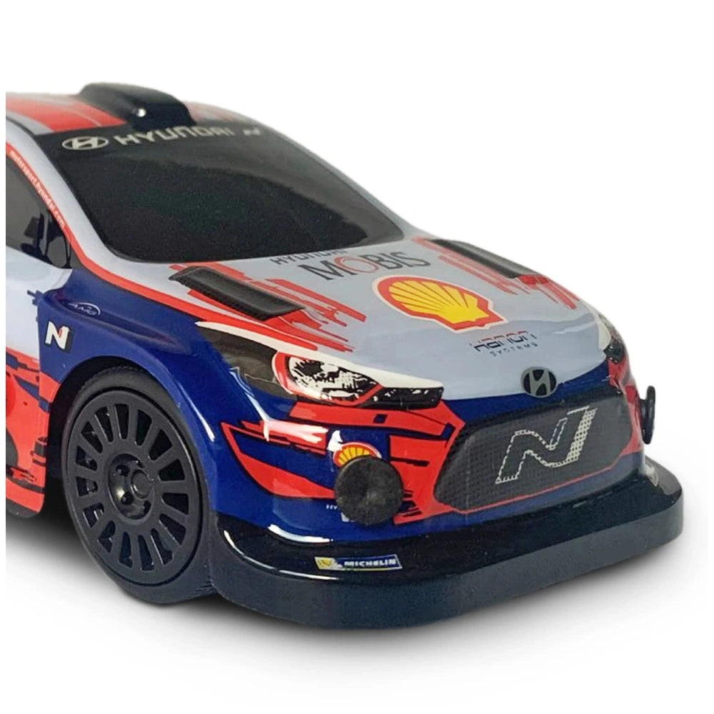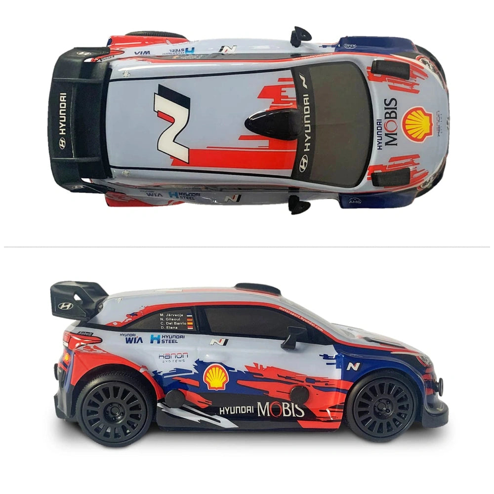 The Mondo Hyundai I20 WRC is a 1:28 scale replica of the iconic rally car that has dominated numerous championships. Its realistic design captures the essence of the original vehicle, making it a fantastic collectible as well as a fun toy. The Lexan body not only enhances the car's aesthetic appeal but also ensures durability, allowing it to withstand the rigors of play. Children can engage in imaginative racing scenarios, recreating their favorite rally moments with this impressive model.