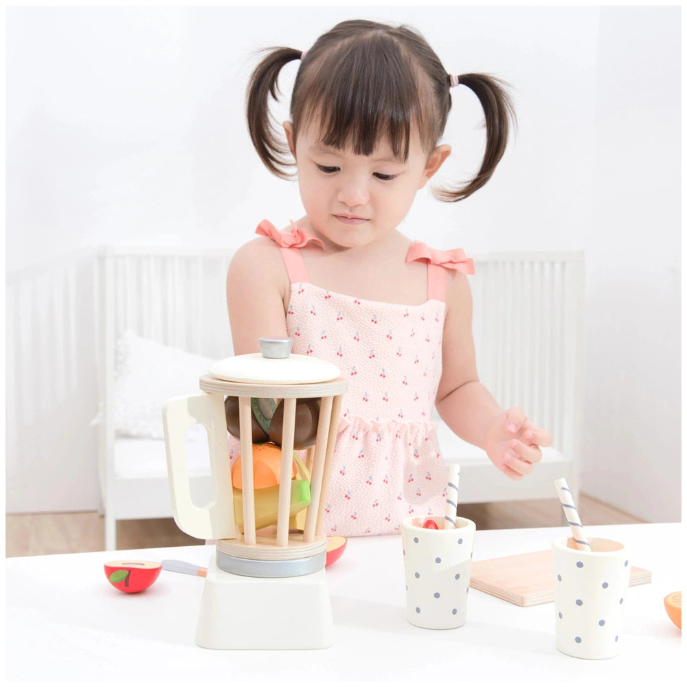 Role-playing with the Smoothie Maker Set encourages social interaction as children can play together, sharing their smoothie recipes and serving each other. This collaborative play fosters communication skills and teamwork, making it an excellent choice for playdates or family bonding time. The two wooden cups with straws included in the set are perfect for serving up their imaginative smoothie creations, adding an extra layer of realism to their play.