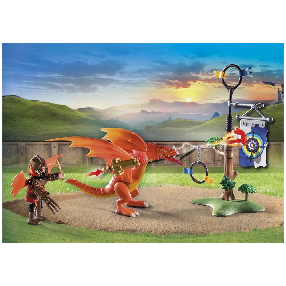 The playset also comes with two detailed Playmobil knight figures, each adorned with armor, swords, shields, and a variety of accessories. These figures are designed to withstand the rigors of battle while providing endless opportunities for role-playing. Children can create their own narratives, pitting General McGriffin against Tyragon, the dragon trainer, in a contest of skill and bravery. The rich storytelling potential encourages collaboration and social interaction among friends and family.