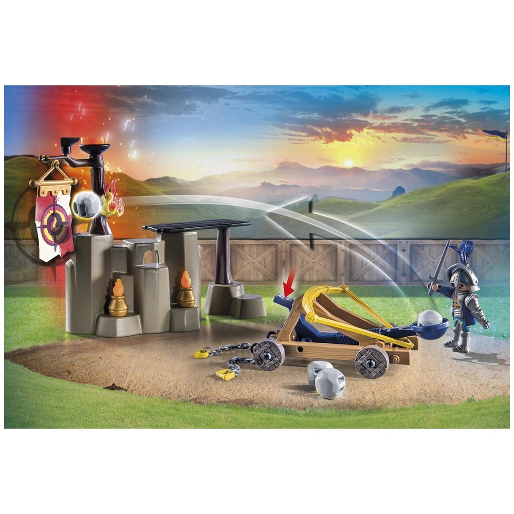 Introducing the Playmobil Novelmore Vs. Burnham Raiders - Battle Arena - 71210, an exhilarating playset that transports young adventurers into a world of knightly valor and thrilling competition. This dynamic arena is designed for children aged four and up, providing an engaging platform for imaginative play. With its intricate details and interactive features, this set is perfect for aspiring knights eager to test their skills against formidable foes.