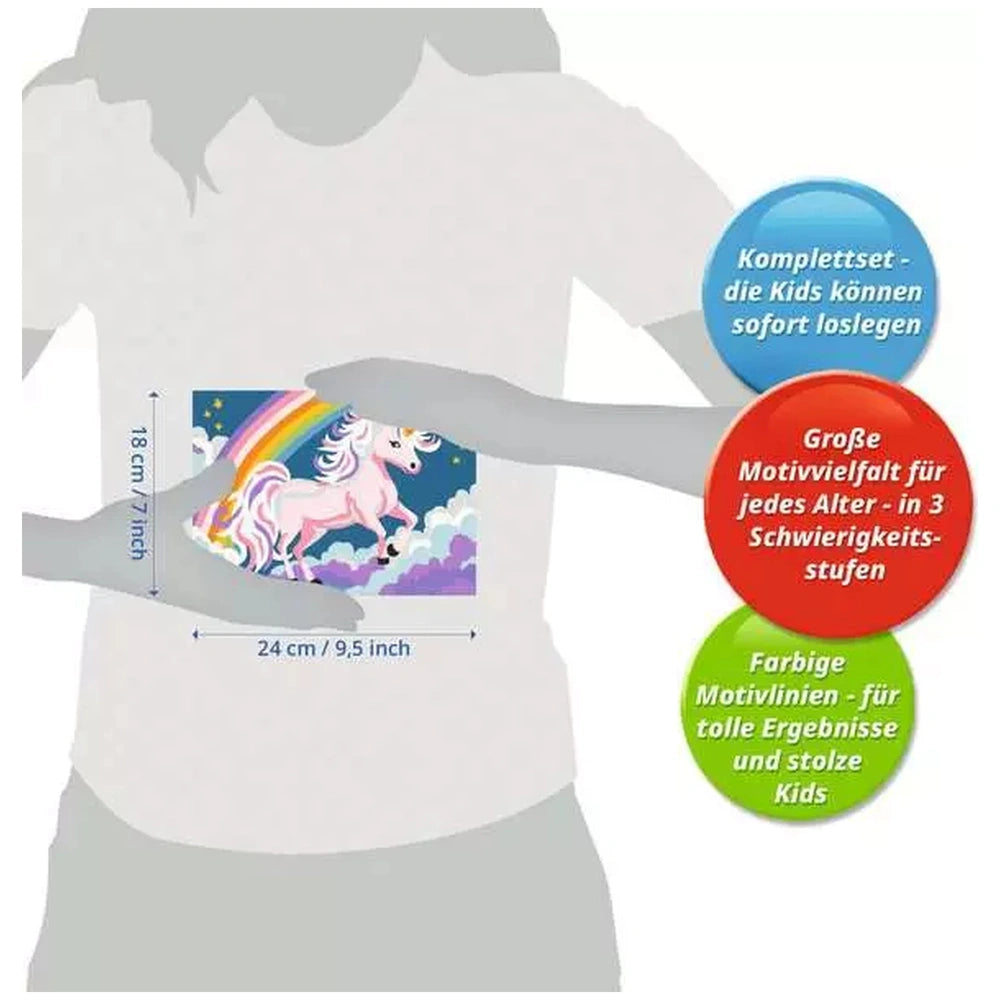 Ravensburger - CreArt Dieren Roze Eenhoorn - Kunst & Ambachten Maak kennis met de Ravensburger CreArt Dieren - Roze Eenhoorn, een betoverende kunst- en knutselset die is ontworpen om de creativiteit van kinderen van negen jaar en ouder te inspireren. Deze heerlijke schilderkit heeft een fascinerend roze eenhoornmotief, perfect voor jonge kunstenaars die hun artistieke talenten willen verkennen. Met zijn levendige kleuren en aantrekkelijke ontwerp belooft dit product urenlang plezier en artistieke expressie. Het unieke aspect van de Ravensburger CreArt-set ligt in de gekleurde omtrekfunctie, die de schilderervaring verbetert door het voor kinderen gemakkelijker te maken om de verschillende secties van de eenhoorn te identificeren. Dit doordachte ontwerpelement vereenvoudigt niet alleen het schilderproces, maar zorgt ook voor een aangenamere en bevredigende uitkomst. Elke penseelstreek wordt een stap naar het creëren van een prachtig meesterwerk, wat een gevoel van voldoening en trots bij jonge makers bevordert. In de set zijn 14 voorgemengde acrylverven inbegrepen, waardoor het mengen van kleuren niet nodig is en kinderen zich volledig kunnen concentreren op hun artistieke expressie. De hoogwaardige verven bieden uitstekende dekking en levendige resultaten, waardoor elke schilderbeurt een belonende ervaring is. De penseel die bij de kit is inbegrepen, is ontworpen voor optimale controle, zodat kinderen met precisie en vertrouwen kunnen schilderen. Ravensburger begrijpt het belang van vaardigheidsontwikkeling bij jonge kunstenaars. De Roze Eenhoorn schilderkit is gestructureerd met drie niveaus van moeilijkheid, waardoor zowel beginners als meer gevorderde schilders aan hun trekken komen. Deze doordachte aanpak stelt kinderen in staat om in hun eigen tempo vooruitgang te boeken, terwijl ze geleidelijk hun fijne motoriek en schildertechnieken verbeteren naarmate ze complexere ontwerpen aanpakken. Deze schilderset is niet alleen een fantastische manier voor kinderen om zich artistiek uit te drukken, maar het is ook een geweldig cadeau-idee voor verjaardagen, feestdagen of elke speciale gelegenheid. Het voltooide kunstwerk kan trots worden tentoongesteld als decoratief stuk, wat een persoonlijke touch aan elke kamer toevoegt. Moedig de creativiteit en artistieke groei van uw kind aan met de Ravensburger CreArt Dieren - Roze Eenhoorn. Bestel nu en zie hoe ze aan een kleurrijke reis van verbeelding en zelfexpressie beginnen!