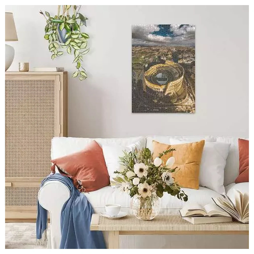 De puzzel van het Colosseum in Rome is een hoogtepunt van de standaard volwassenencollectie en viert een van de meest significante monumenten uit de menselijke geschiedenis. De afbeelding toont de ingewikkelde steenstructuren en dramatische schaduwen van het Flavische Amfitheater, weergegeven met hoge definitie die de monumentale schaal van de locatie benadrukt. Met een afmeting van 70x50 cm bij voltooiing, creëert het portretformaat een opvallende visuele impact, waardoor het een ideale kandidaat is om ingelijst te worden als een stuk klassieke reisart.