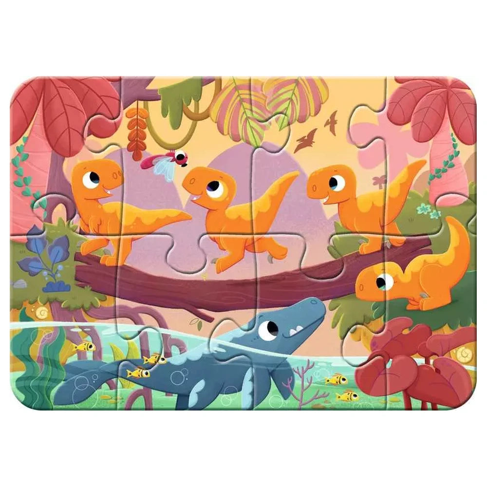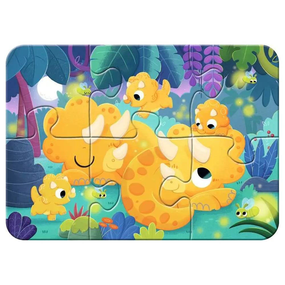 The My First Puzzles series is celebrated for its ability to guide children through their individual developmental stages with joy and success. The Dino Friends set includes four beautifully illustrated scenes of friendly prehistoric creatures, capturing the imagination with vibrant colours and relatable imagery from a child's world. Each puzzle increases in challenge, starting with a simple two-piece dinosaur and advancing to an eight-piece scene, ensuring that the challenge remains age-appropriate and rewarding. Measuring 21 x 15 cm when complete, these landscape-format puzzles are made from extra-thick cardboard to withstand the enthusiastic handling of toddlers.