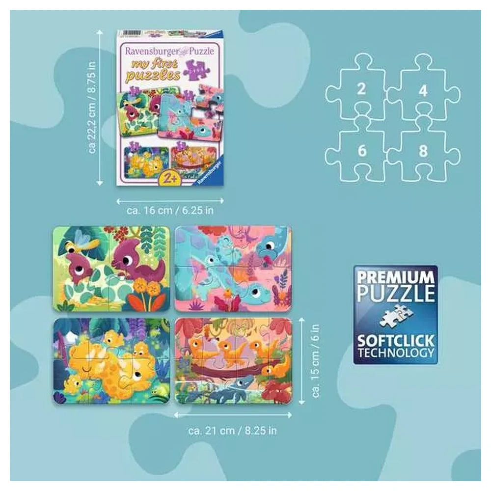 Ravensburger presents an engaging set of introductory puzzles designed for toddlers aged 2 and above, within the category of Baby Activity Toys. The My First Puzzles Dino Friends collection sparks curiosity and a love for learning through playful discovery. This set features four jigsaws with varying difficulty levels, allowing children to experience the joy of completing puzzles independently while developing essential skills.