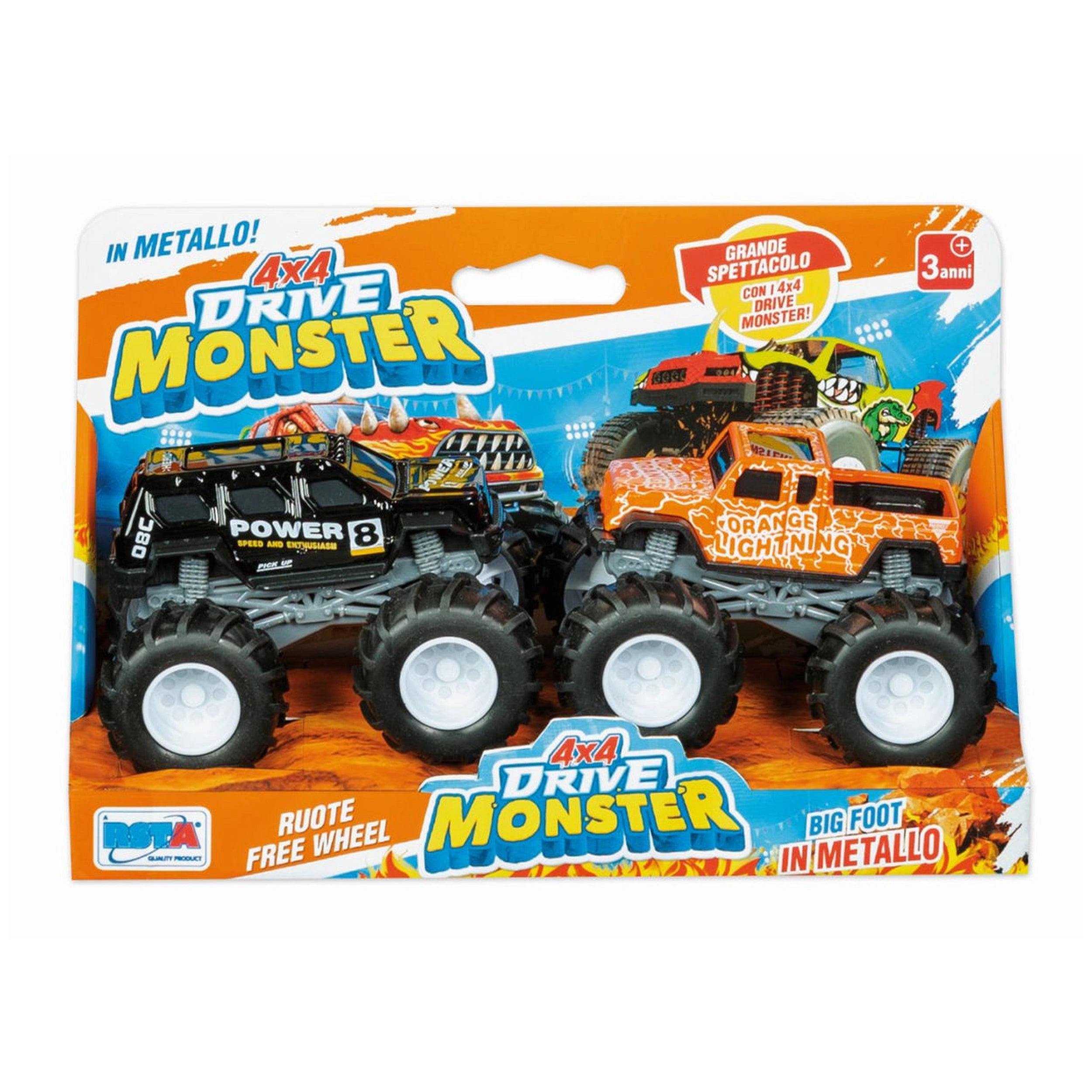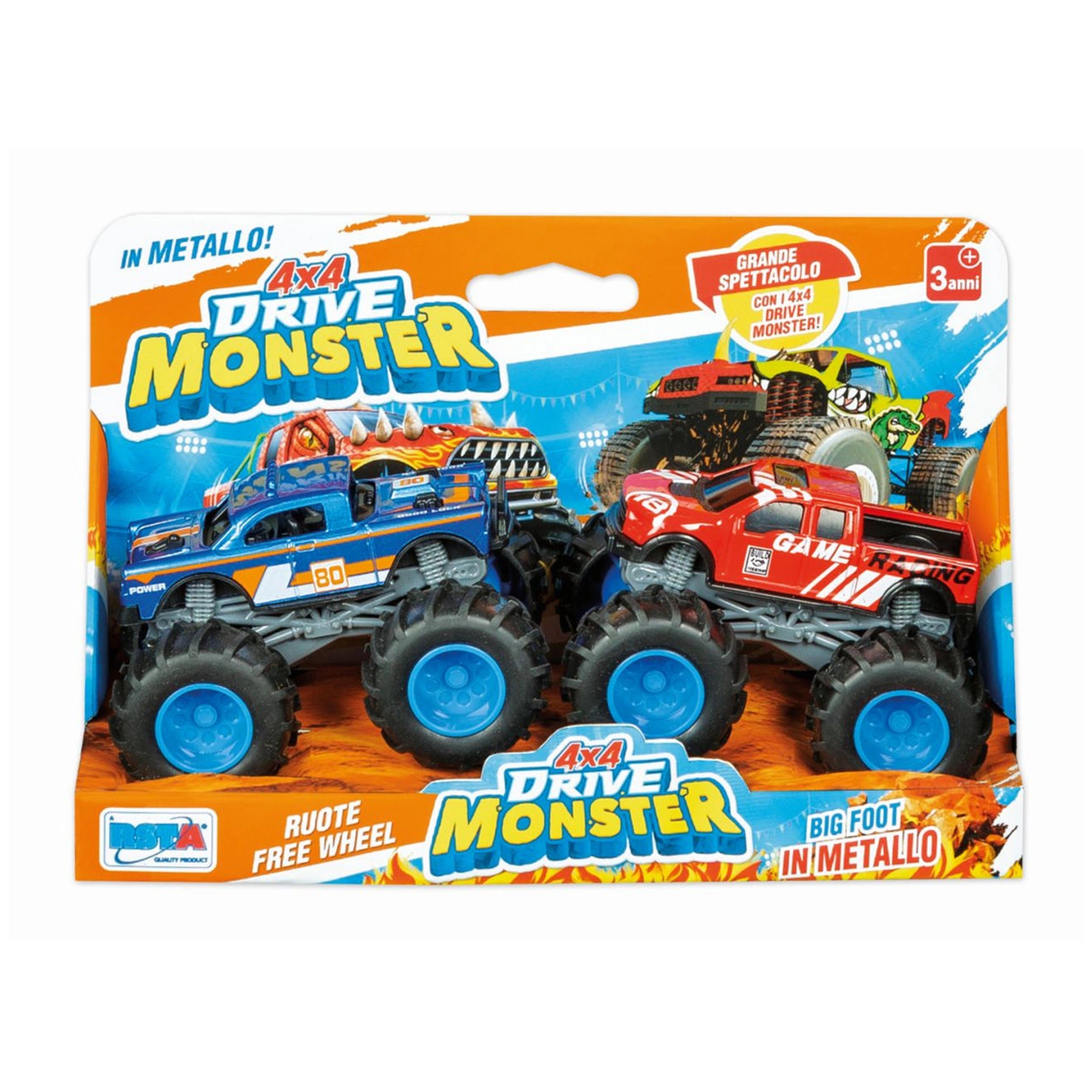 Introducing the RONCHI SUPER TOYS RS Toys - Monster Truck 4x4 Drive Monster in Metallo, a thrilling set designed to ignite the imagination of children aged three and up. This dynamic duo of powerful Monster Trucks promises to deliver an exhilarating experience, combining robust construction with eye-catching designs that are sure to captivate young adventurers. With these vehicles, every playtime transforms into an action-packed spectacle, making them an essential addition to any child's toy collection.