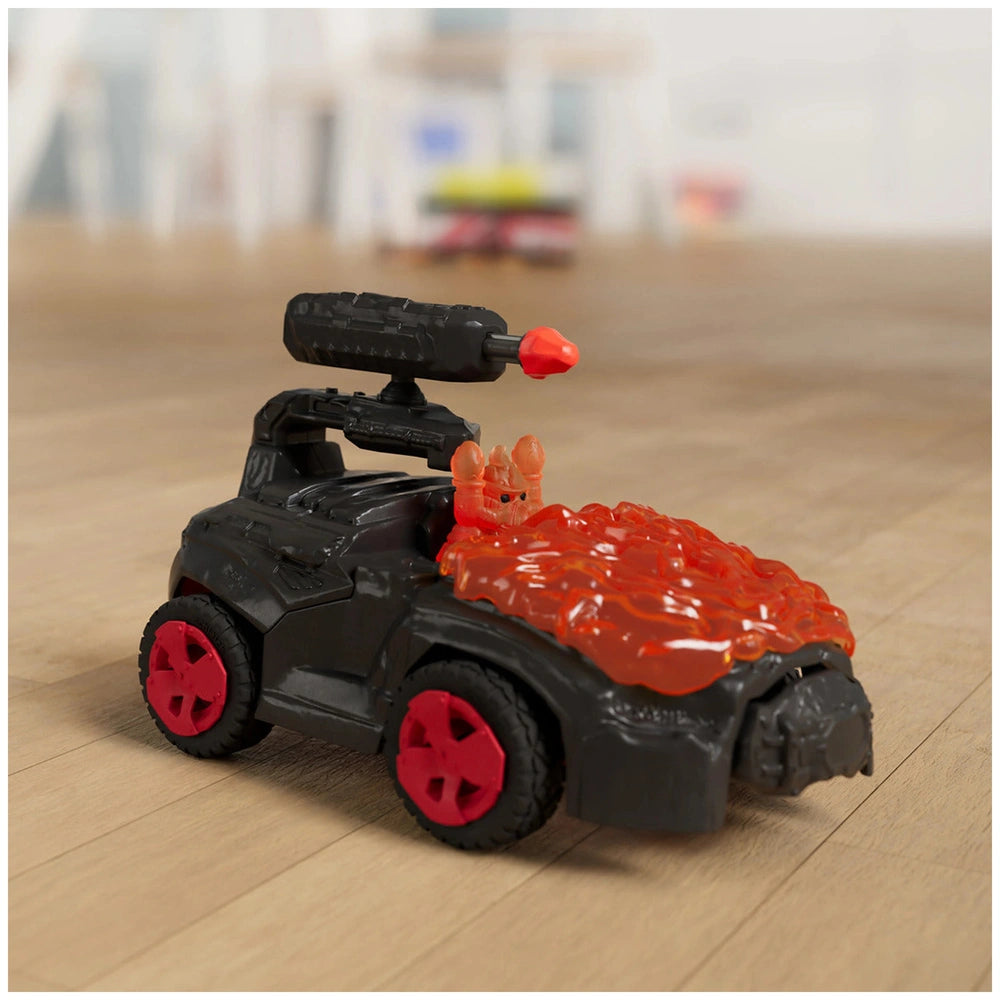 The Lava Crashmobile is engineered for speed and resilience, boasting a transparent lava armor that can withstand even the toughest collisions. This unique feature ensures that the Mini Creature, armed and ready for action, can navigate through the treacherous terrains of ELDRADOR® without fear. The moment the vehicle encounters a significant impact, the armor opens, allowing the Mini Creature to leap into action, ready to face any challenge that comes its way.