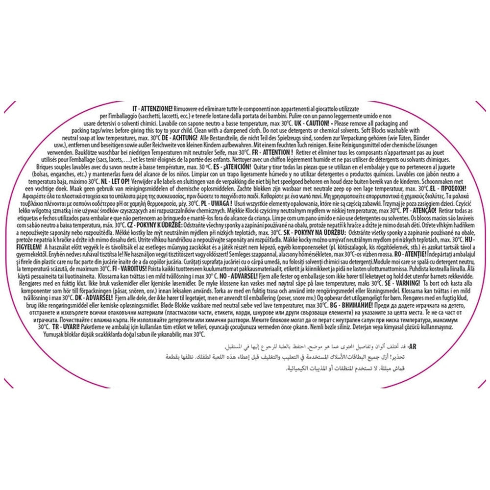Soft Clemmy - Touch And Play 20 Zachte Bouwblokken Tas Baby Activiteit Speelgoed Maak kennis met de Soft Clemmy - Touch And Play 20 Zachte Bouwblokken Tas, een uitzonderlijke collectie baby activiteit speelgoed ontworpen om zuigelingen van 6 tot 18 maanden te boeien en te vermaken. Deze zorgvuldig samengestelde set bevat 20 levendige en pluche Baby Clemmy blokken, allemaal verpakt in een transparante tas voor gemakkelijke opslag en draagbaarheid. Met de grootste zorg vervaardigd in Italië, zijn deze bouwblokken niet alleen visueel aantrekkelijk, maar bevorderen ze ook veilig spel, waardoor ze een ideale keuze zijn voor ouders die kwaliteits speelgoed voor hun kleintjes zoeken. De Soft Clemmy blokken zijn speciaal ontworpen om de zintuiglijke verkenning bij jonge kinderen te verbeteren. Met hun felle kleuren en zachte texturen stimuleren deze blokken de visuele waarneming en moedigen ze aandacht en observatievaardigheden aan. Terwijl baby's met de blokken spelen, worden ze geïntroduceerd in de concepten van kleurherkenning en ruimtelijk bewustzijn, wat de basis legt voor cognitieve ontwikkeling. De tactiele ervaring van het knijpen en stapelen van deze pluche blokken helpt ook bij de ontwikkeling van fijne motoriek, waardoor speeltijd zowel leuk als educatief is. Veiligheid is van het grootste belang als het gaat om baby speelgoed, en de Soft Clemmy blokken excelleren op dit gebied. Gemaakt van niet-giftige, wasbare en aangenaam geurende materialen, zijn deze blokken ontworpen met het welzijn van uw kind in gedachten. Ouders kunnen gerust zijn in de wetenschap dat hun kleintjes spelen met speelgoed dat vrij is van schadelijke stoffen. Bovendien betekent de zachte aard van de blokken dat ze veilig zijn voor baby's om mee te spelen, waardoor het risico op letsel tijdens het spel wordt verminderd. De veelzijdigheid van de Soft Clemmy blokken biedt eindeloze creatieve mogelijkheden. Kinderen kunnen stapelen, sorteren en bouwen naar hartenlust, wat fantasierijk spel bevordert en probleemoplossende vaardigheden aanmoedigt. Terwijl ze experimenteren met verschillende configuraties, leren ze op een speelse manier over balans en zwaartekracht. Deze open speelervaring vermaakt niet alleen, maar koestert ook de creativiteit en zelfexpressie van een kind. Ontworpen voor gemak, komen de Soft Clemmy blokken in een compacte tas van 20,5 x 26,5 x 13 cm en wegen slechts 580 gram. Dit maakt ze gemakkelijk te vervoeren, of je nu naar het park gaat, vrienden bezoekt of gewoon van kamer naar kamer in huis beweegt. Het lichte ontwerp zorgt ervoor dat zelfs de kleinste handjes de blokken gemakkelijk kunnen vastpakken en manipuleren, wat onafhankelijk spel bevordert. Kortom, de Soft Clemmy - Touch And Play 20 Zachte Bouwblokken Tas is een essentiële aanvulling op de speelgoedcollectie van elke baby. Met hun focus op veiligheid, zintuiglijke verkenning en creatief spel, bieden deze blokken een rijke ontwikkelingservaring voor zuigelingen. Mis de kans niet om de speeltijd van uw kind te verrijken met deze heerlijke bouwblokken. Bestel vandaag nog uw Soft Clemmy set en kijk hoe uw kleintje een ontdekkingsreis van verbeelding en creativiteit begint!