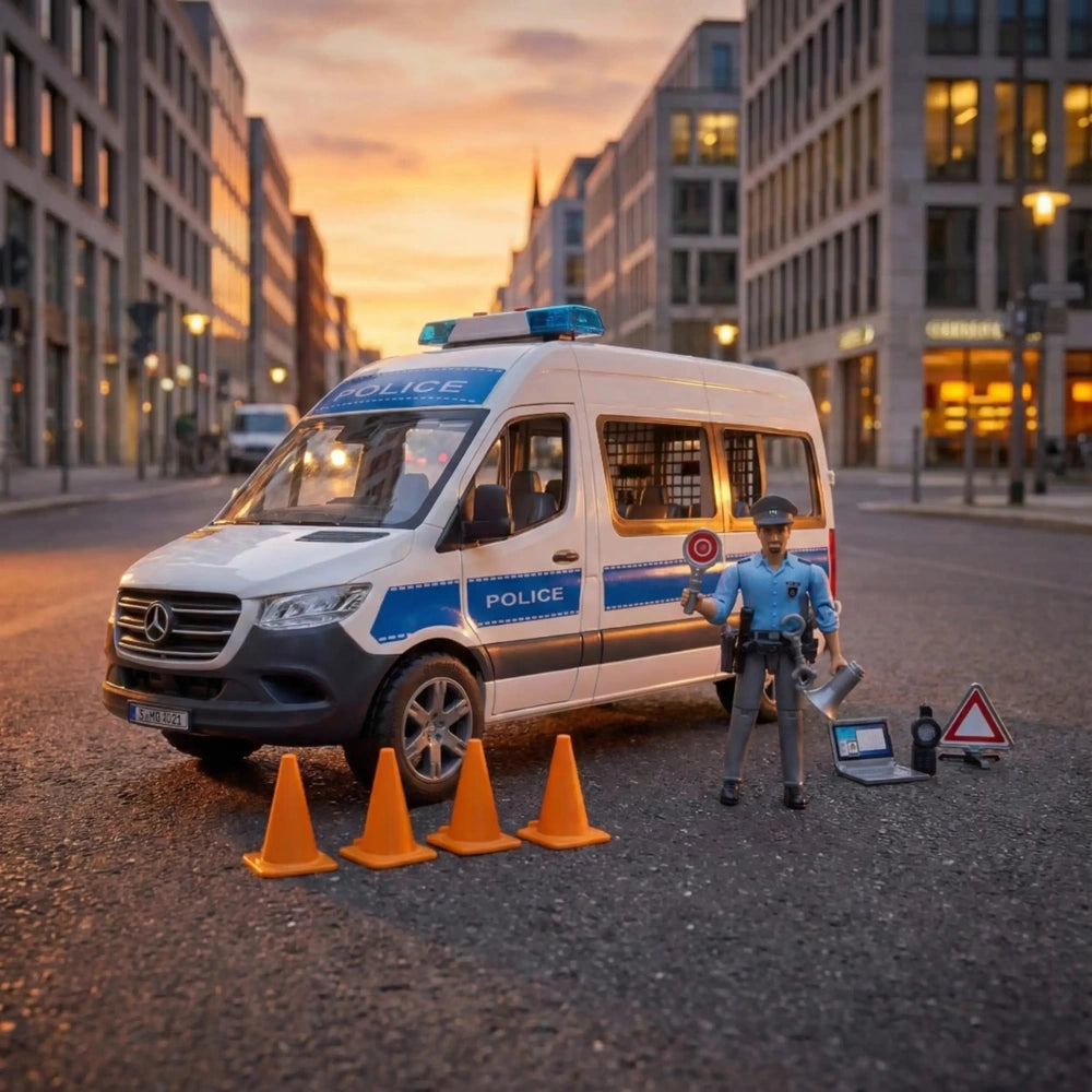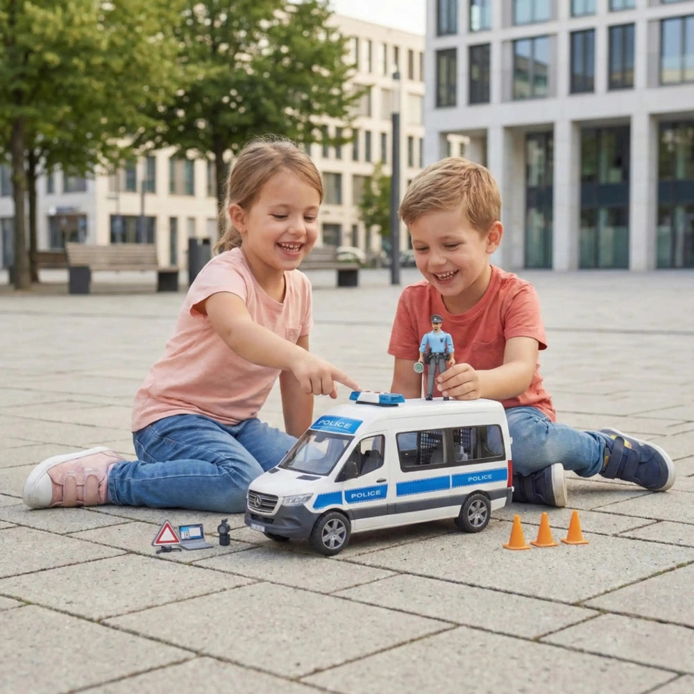In conclusion, the Bruder MB Sprinter Police Emergency Vehicle with Light & Sound Module is an exceptional toy that combines fun, education, and safety. It encourages imaginative play and helps children understand the important role of police in society. Don't miss out on the opportunity to enrich your child's playtime experience. Order the Bruder MB Sprinter Police Emergency Vehicle today and watch as they embark on thrilling adventures, solving mysteries and upholding the law in their very own world!
