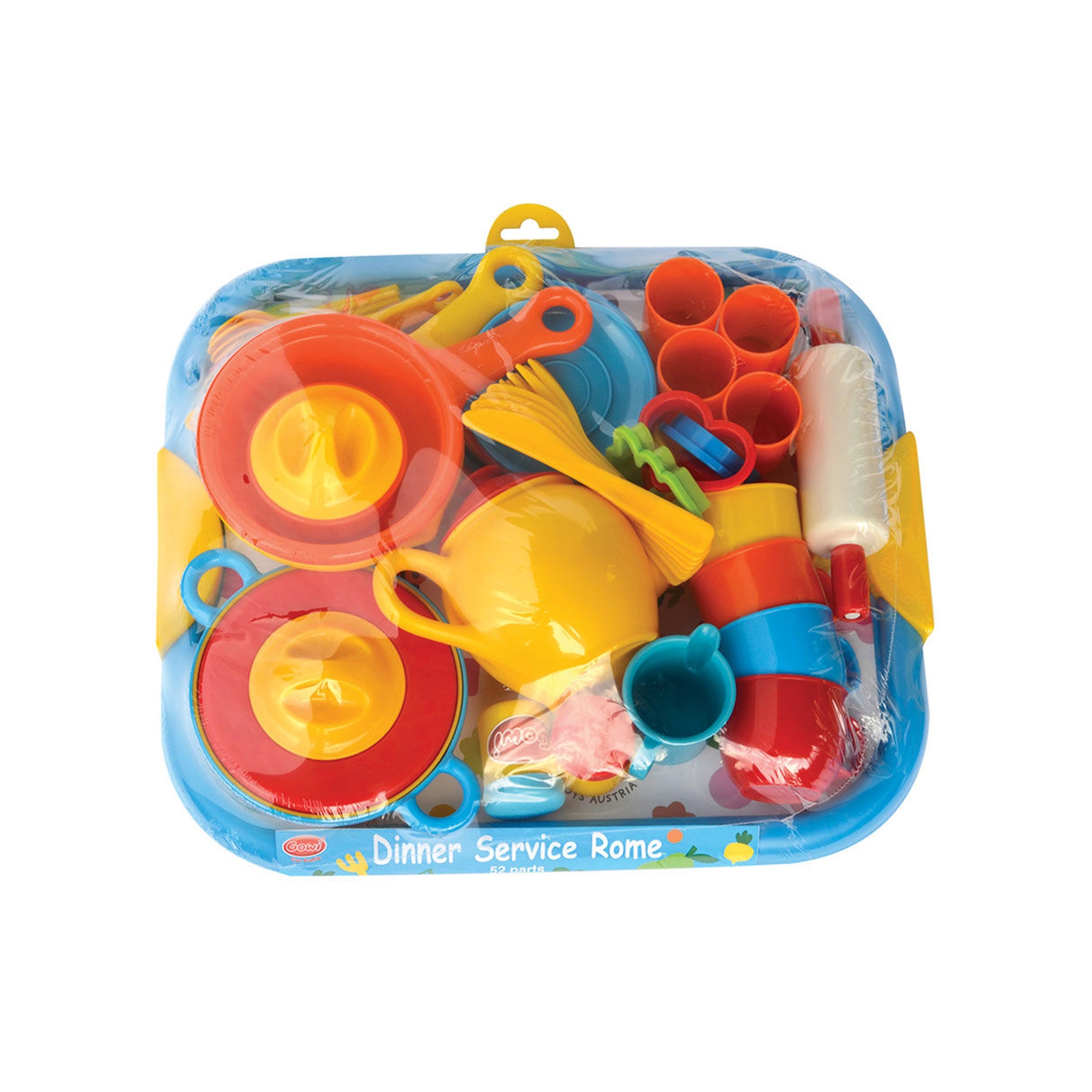 Introducing the GOWI Dinner Service Rome with 52 Pieces, a meticulously crafted play dining set designed to inspire creativity and imaginative role-playing in children. This delightful collection offers young ones the opportunity to explore the world of cooking, baking, and dining through engaging pretend play. With its vibrant colors and realistic design, the GOWI Dinner Service is perfect for little chefs eager to serve up delicious meals in their imaginative kitchens.