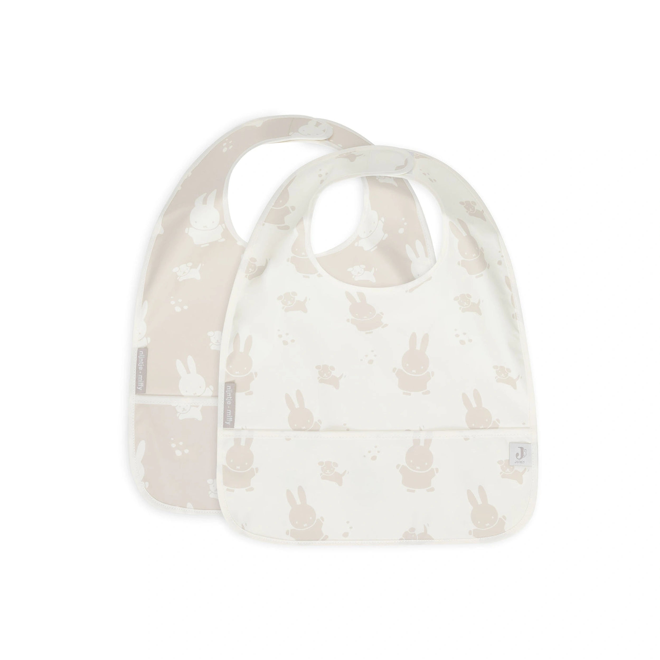 Introducing the Jollein Waterproof Bib featuring the charming Miffy & Snuffy design, available in a convenient 2-pack in the delightful Nougat color. This essential baby accessory is designed to make mealtime a joyful experience for both parents and little ones. From the very first taste of solid food to the adventurous eating habits of toddlers, a reliable bib is a must-have for any parent. The Jollein bib not only protects your child's clothing but also adds a touch of fun with its playful prints.