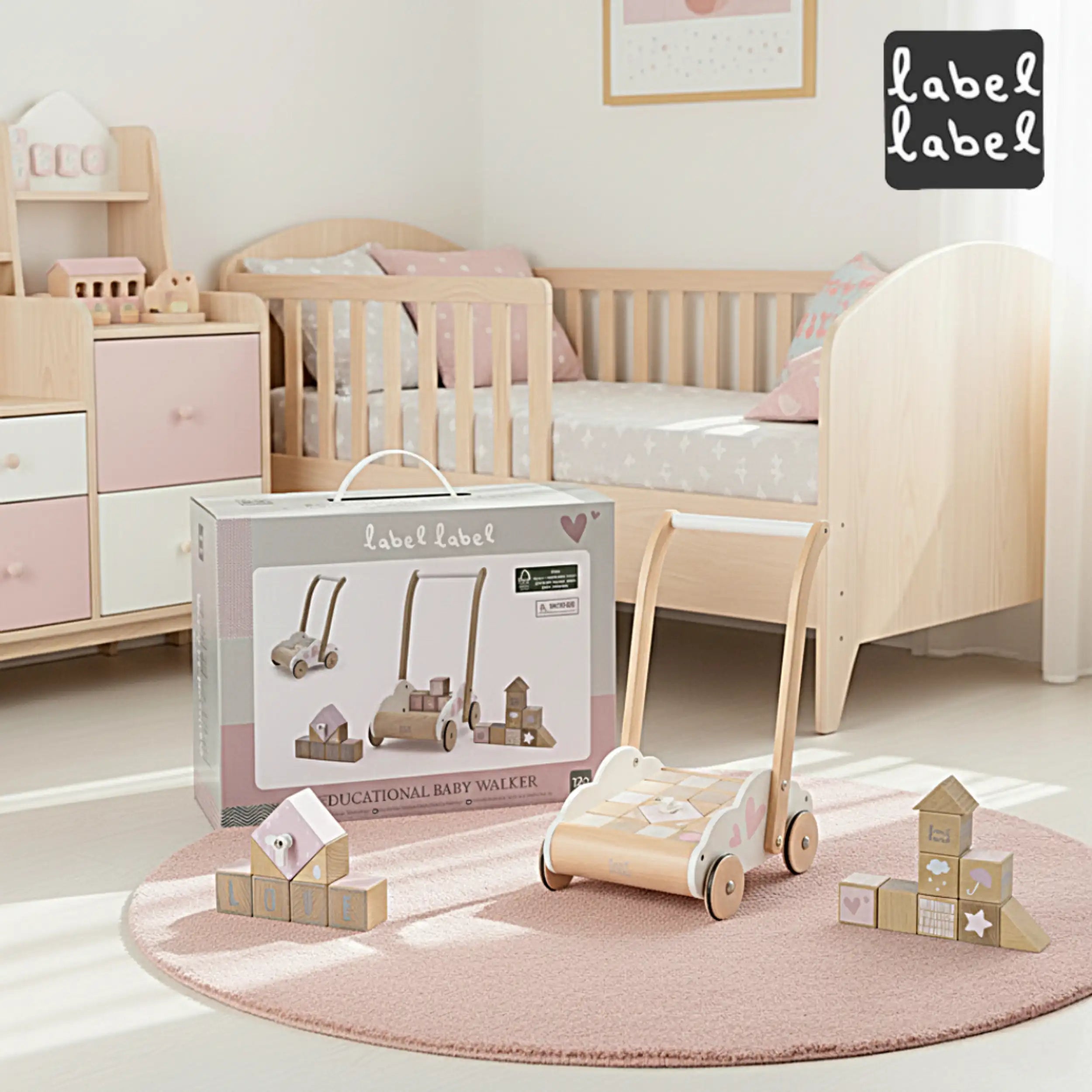 Parents will appreciate the ease of clean-up, as the blocks fit neatly within the cart, making tidying up a part of the play experience. This feature not only promotes organization but also teaches children responsibility in a playful manner. The Label-Label Educational Baby Walker is designed to grow with your child, providing endless opportunities for learning and development.