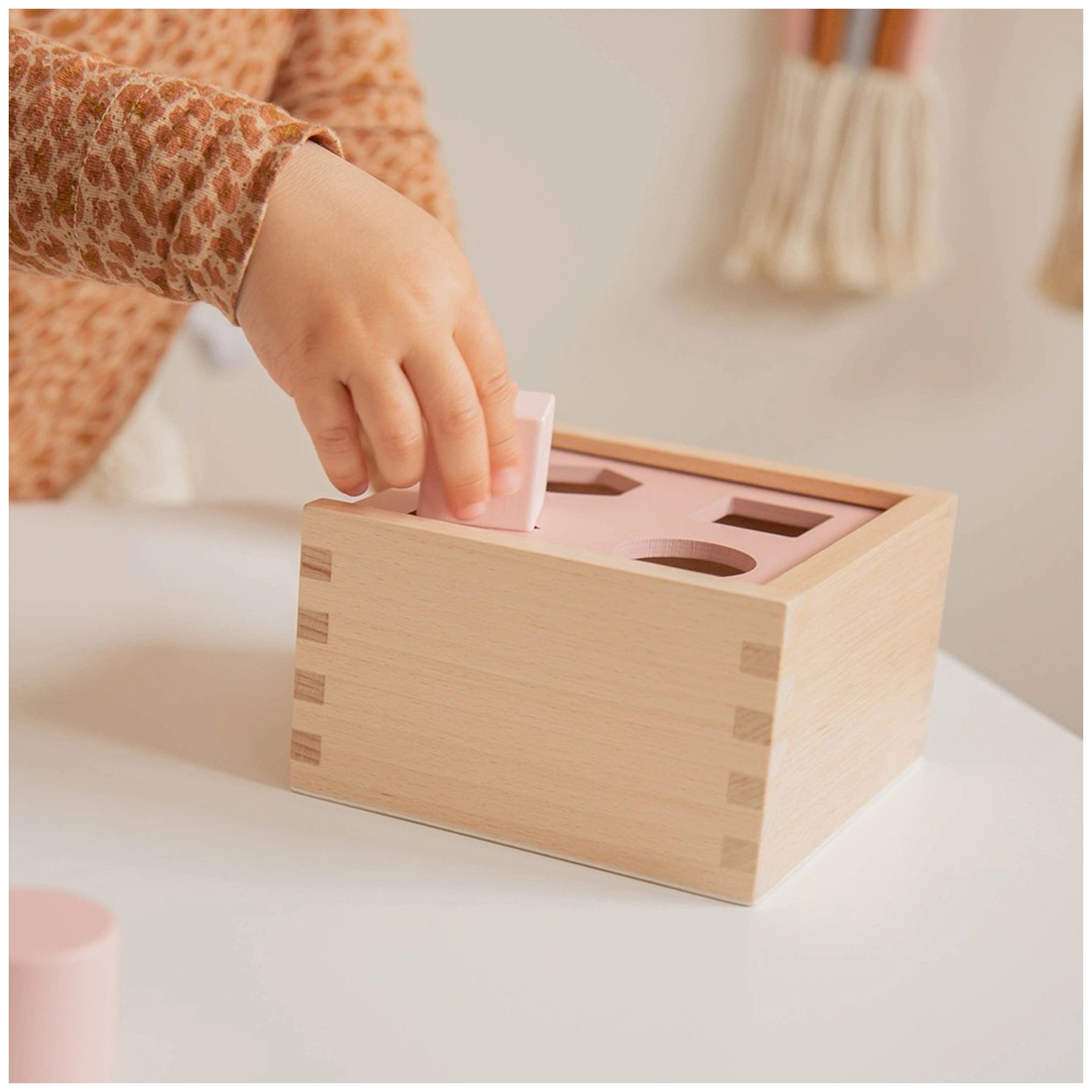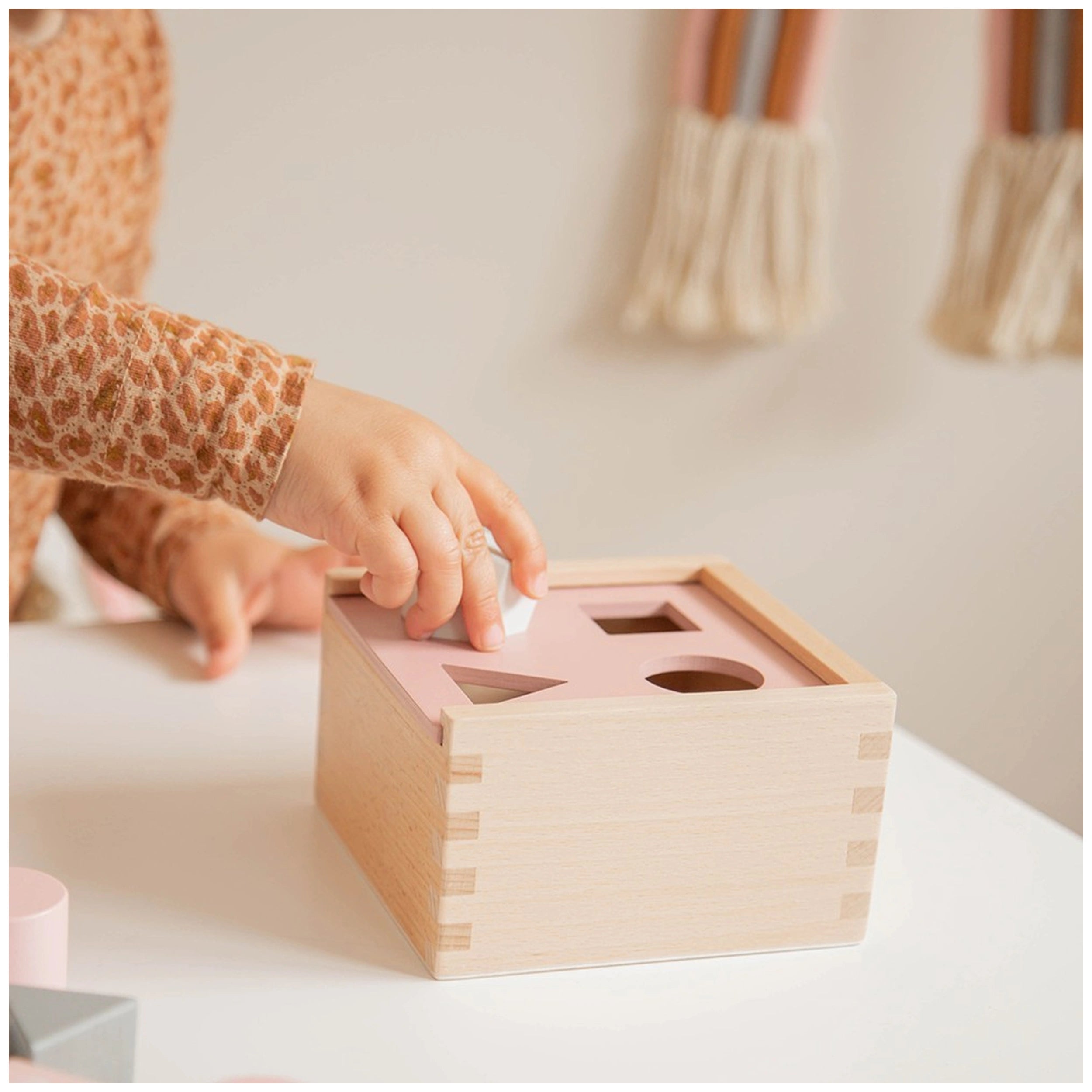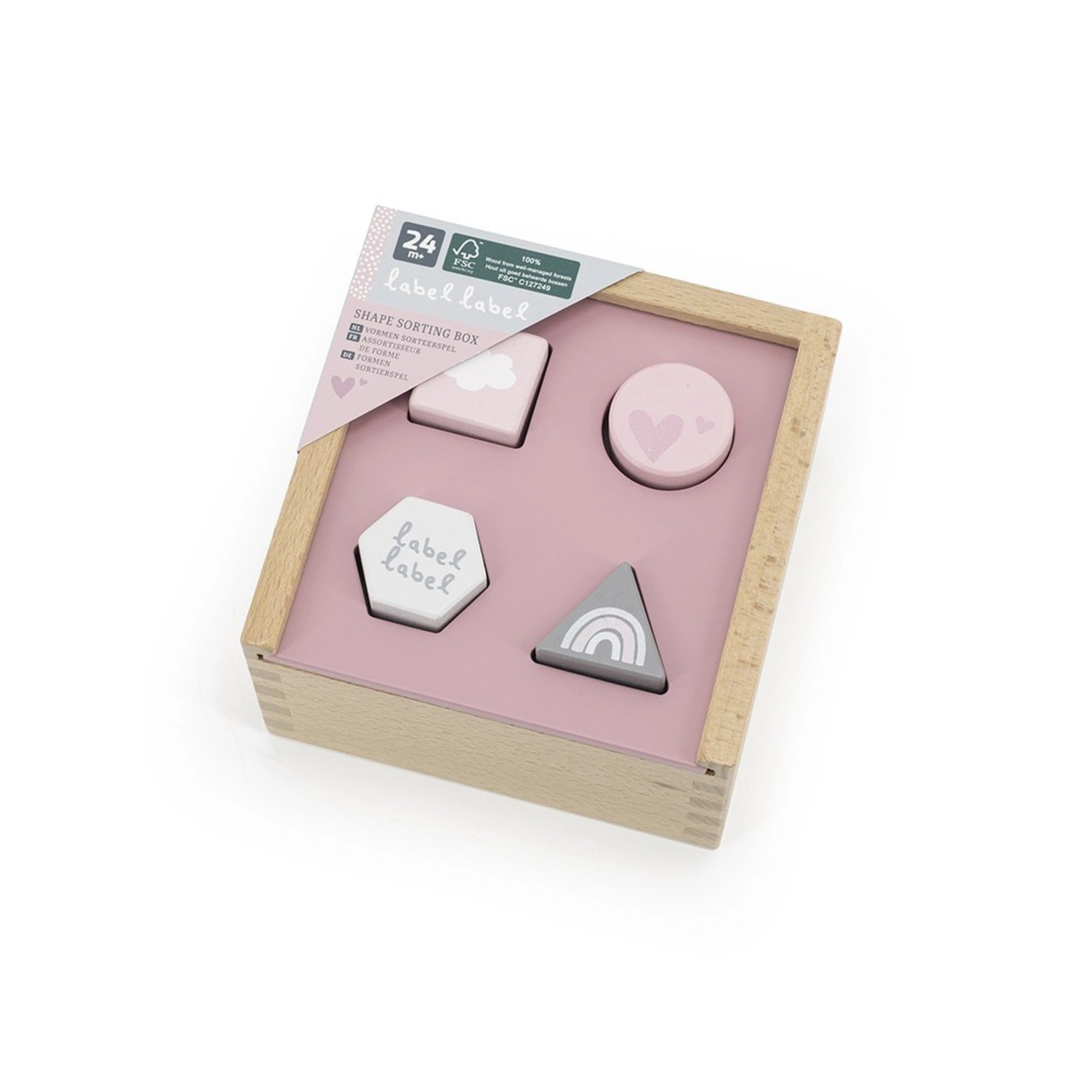 Introducing the Label Label Shape Sorting Box in a delightful pink hue, a perfect addition to your child's playtime that combines fun and education. This beautifully crafted baby activity toy is designed to engage toddlers while helping them develop essential cognitive skills. Made from high-quality FSC certified beech wood, the sorting box is not only durable but also environmentally friendly, ensuring that your child plays with a product that is safe for both them and the planet.