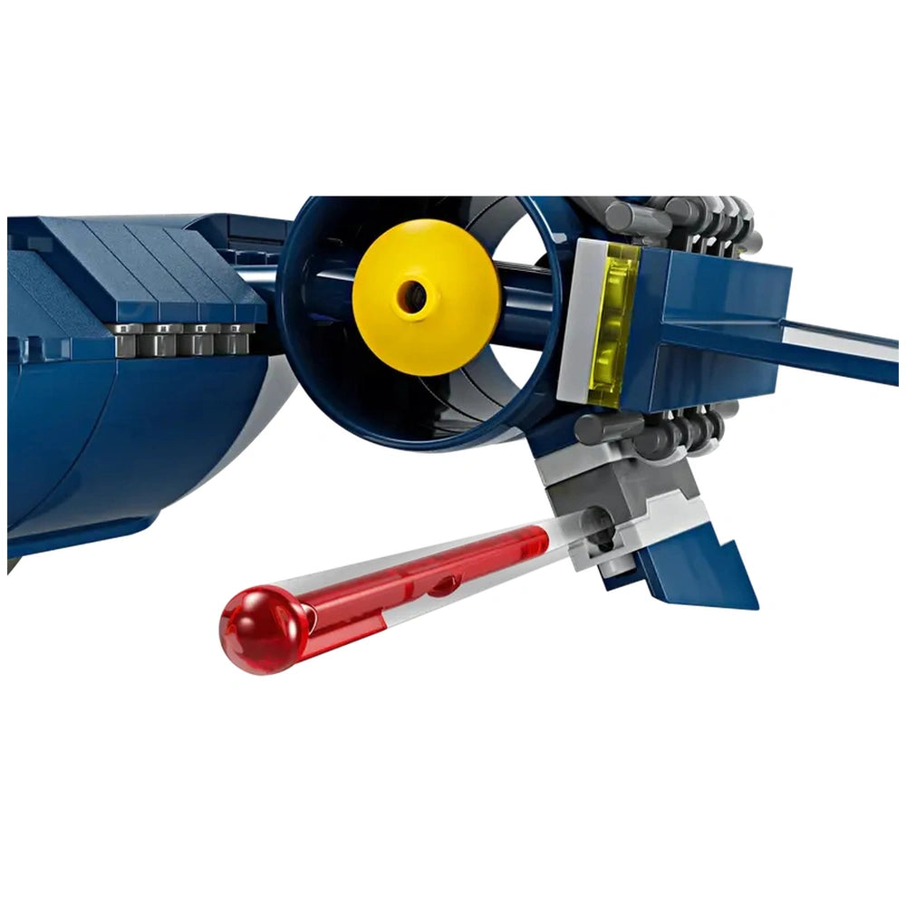 Equipped with two stud shooters on either side and two spring shooters beneath the wings, the X-Jet is ready for action-packed play. Kids can unleash their creativity as they engage in thrilling aerial combat scenarios, defending against villains or teaming up for cooperative missions. Additionally, the buildable model features two removable containers for storing spare studs and Wolverine's iconic claws, ensuring that everything is organized and ready for the next adventure. This thoughtful design enhances the play experience, allowing for seamless transitions between building and imaginative play.