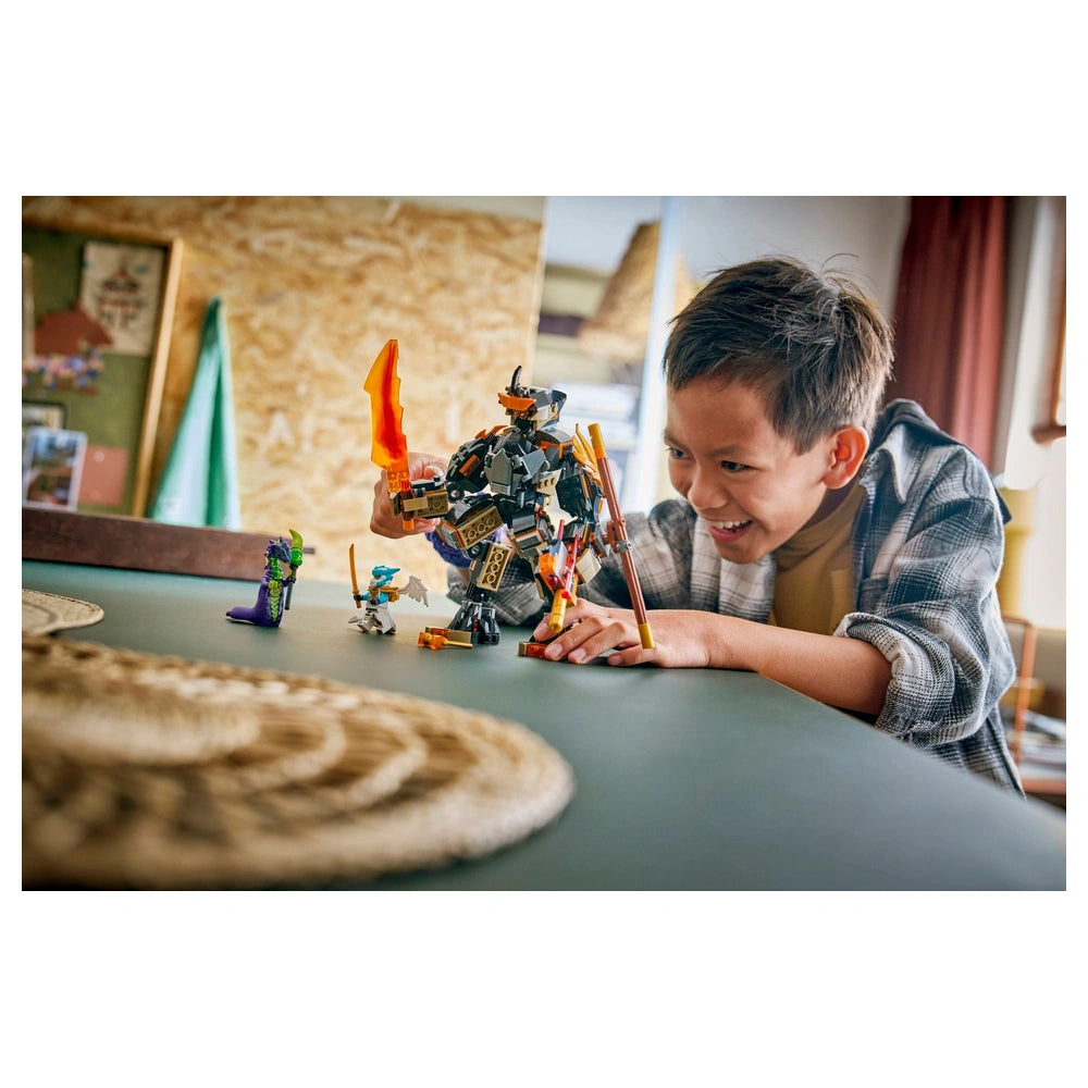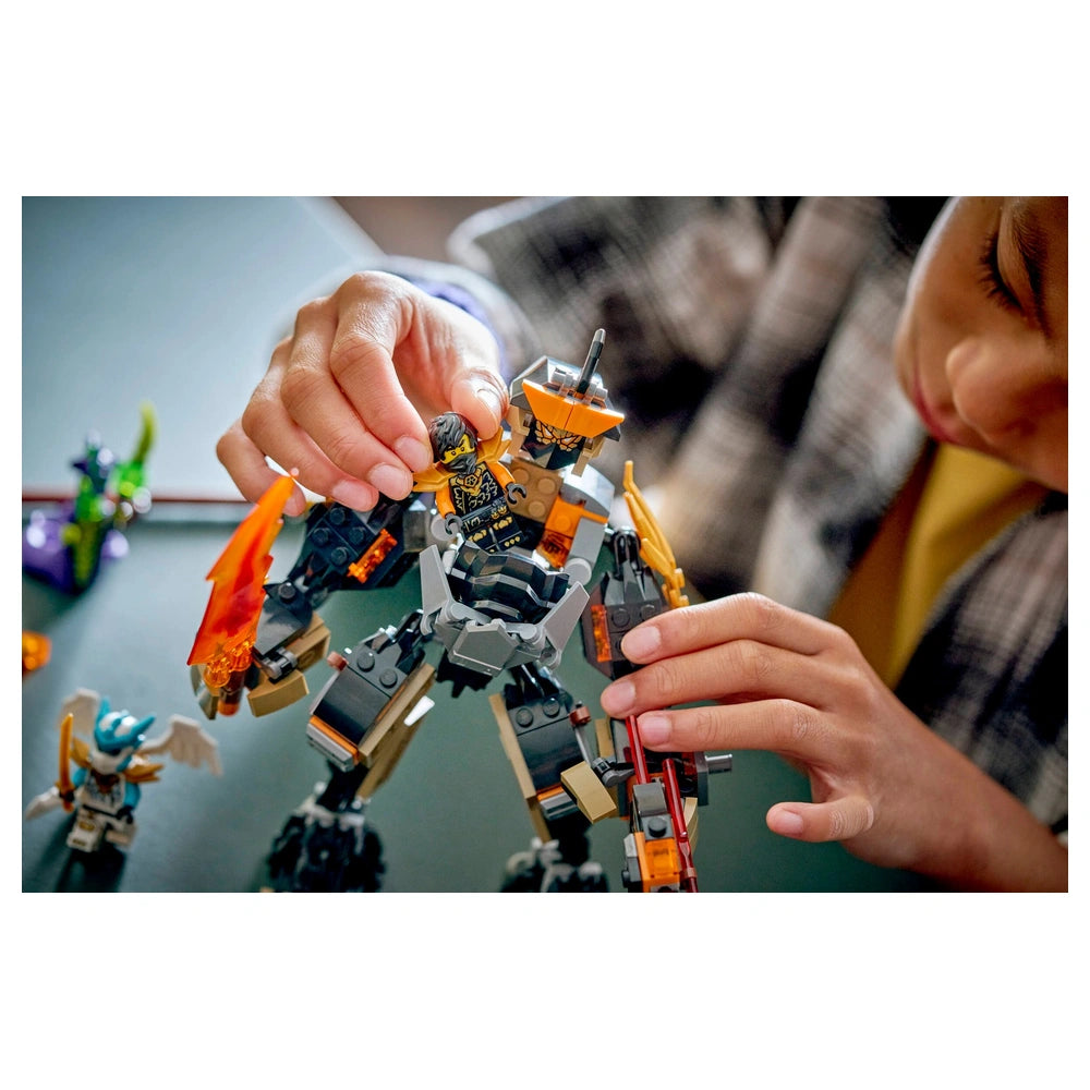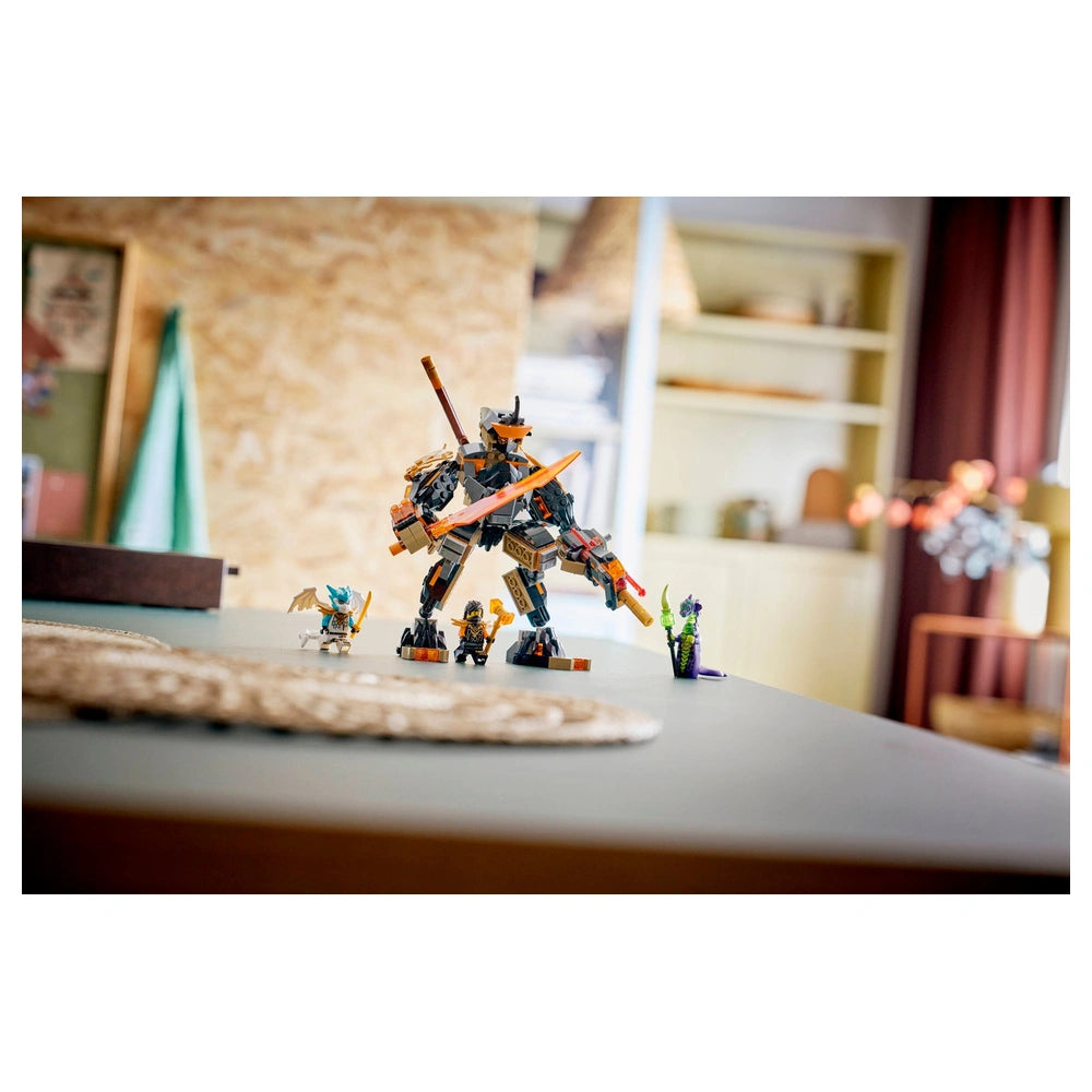 The centerpiece of this set is the impressive mech toy, which boasts a posable head, arms, shoulder armor, fingers, legs, and ankles. This level of articulation allows for dynamic poses and realistic action sequences. The mech also includes a cockpit in its chest, providing a perfect spot for the minifigure of Cole to take command. Additionally, a backpack is integrated into the design, offering convenient storage for the mech's weapon accessories, ensuring that kids can keep their play area organized while they engage in epic battles.