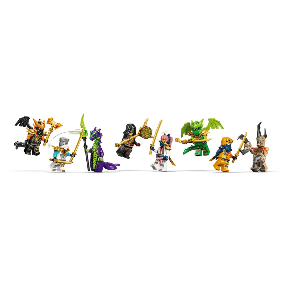 The LEGO Ninjago The Dragon of Life set comes with eight minifigures, including beloved characters such as Zane, Sora, Arin, dragon form Lloyd, dragon form Cole, and the villainous trio of Acid Monster, Earth Monster, and Loyalist Leader. This diverse cast of characters allows for endless scenarios and imaginative play, encouraging teamwork and creativity as children create their own Ninjago adventures.
