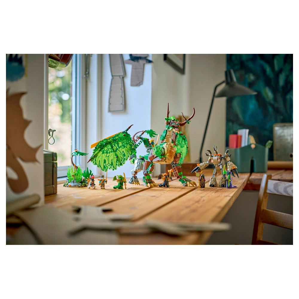 In addition to the dragon, the set includes a side build featuring a tree and a plant that cleverly conceals a golden sword accessory. This adds an extra layer of excitement as children explore the environment and discover hidden treasures. The playset also features a mini mech toy, complete with a cockpit for a minifigure, allowing for even more dynamic storytelling and role-playing opportunities. The mech's posable pincer arms and legs ensure that kids can engage in epic battles against the villainous characters included in the set.