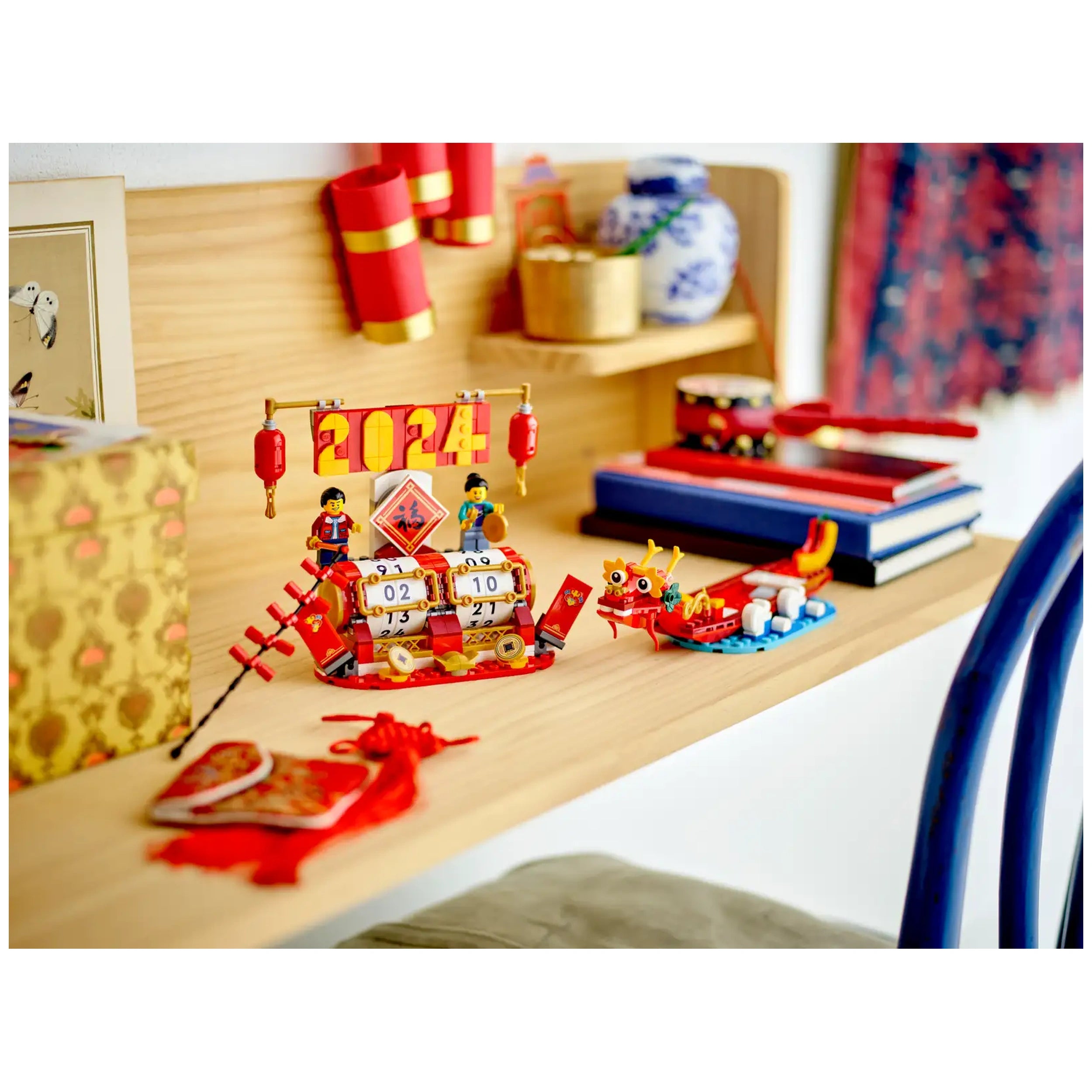 Introducing the LEGO® Seasonal Festival Calendar (40678), a captivating construction set designed to celebrate two of the most significant seasonal holidays: the Lunar New Year and the Dragon Boat Festival. Perfect for children aged 10 and up, this innovative calendar not only serves as a festive decoration but also as a creative outlet that encourages imaginative play. With its unique rotating feature, kids can easily customize the display to showcase the current date, making it a functional addition to any holiday celebration.