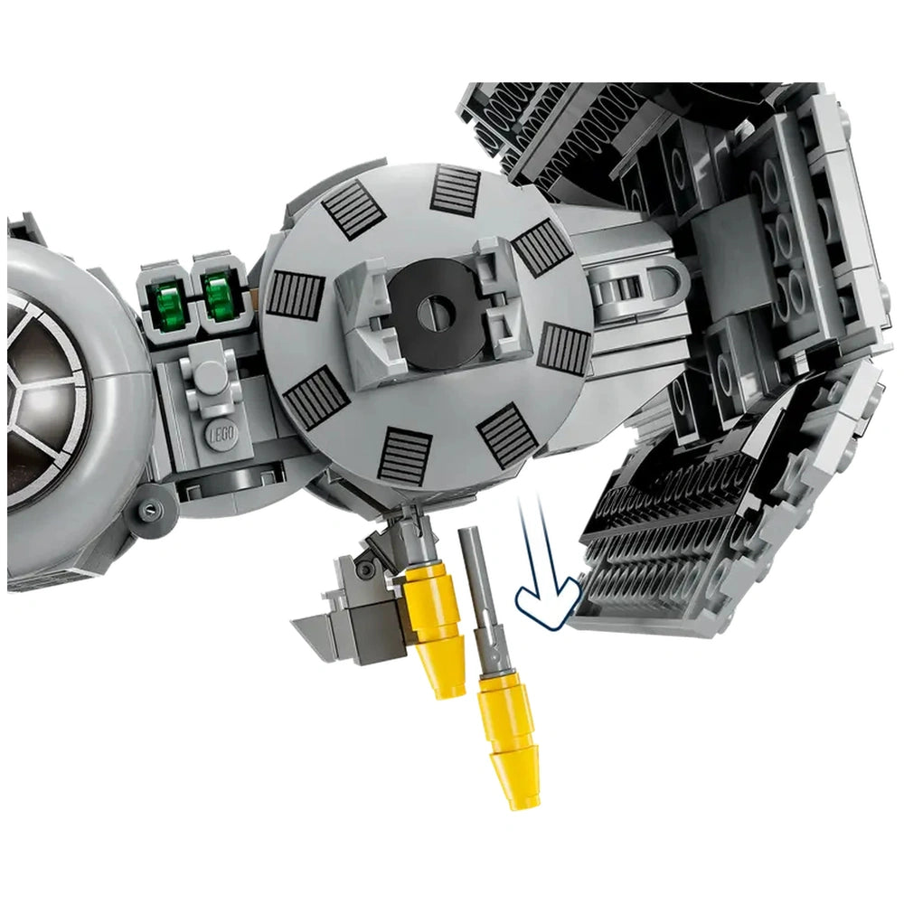 The TIE Bomber set includes an array of exciting components that enhance the play experience. The starfighter features an opening minifigure cockpit, allowing players to seat their favorite characters inside. Additionally, the set is equipped with a torpedo-dropping function, enabling users to launch attacks on their opponents. With two stud shooters at the ready, this construction set is designed for action-packed play, making it an ideal gift for Star Wars fans aged 9 and up.