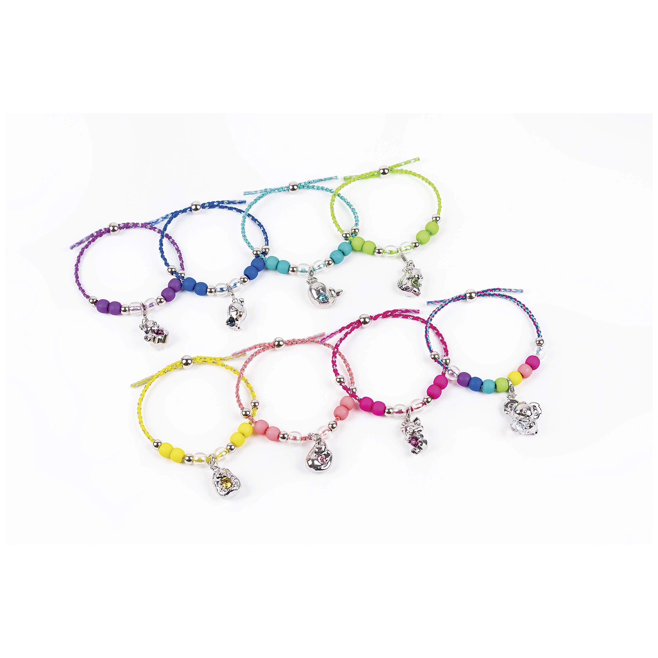 Introducing the Make It Real - Crystal Secrets Bracelets with Swarovski, a delightful DIY playset designed to inspire creativity and imagination in children. This enchanting kit allows young creators to craft their own stunning bracelets, each adorned with a unique animal-shaped pendant featuring a genuine Swarovski crystal. Perfect for children who love to express themselves through jewelry, this product combines fun and artistry in a captivating way.