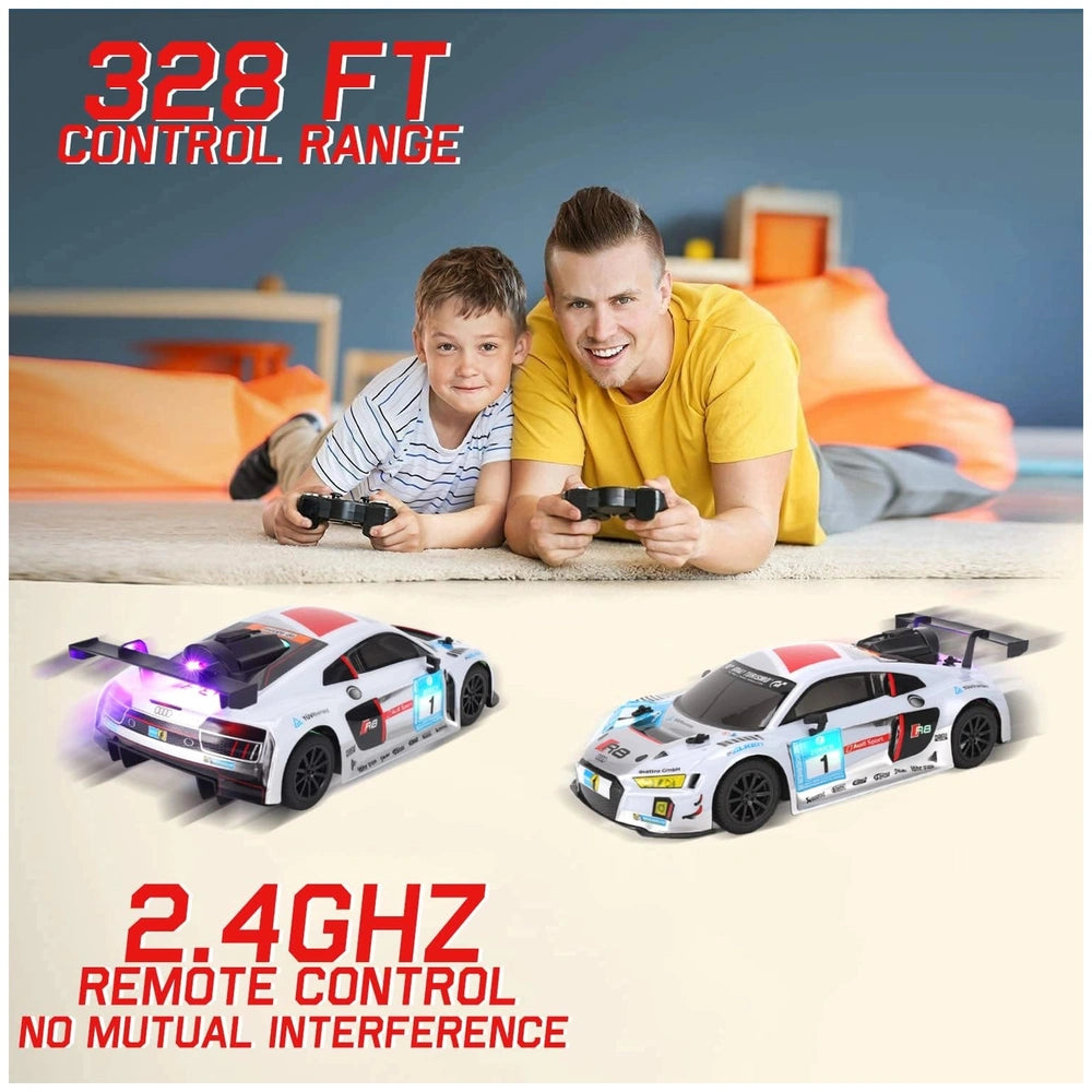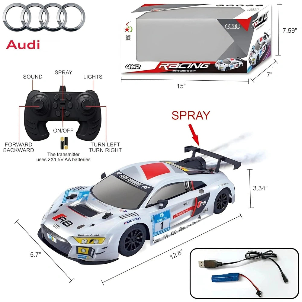 Adding to the immersive experience, the Audi R8 features realistic engine sounds that activate with the controller. This auditory element enhances the thrill of driving, making you feel as though you're behind the wheel of a real sports car. Coupled with fun music that plays during operation, this RC vehicle offers a multi-sensory experience that elevates the enjoyment of playtime.