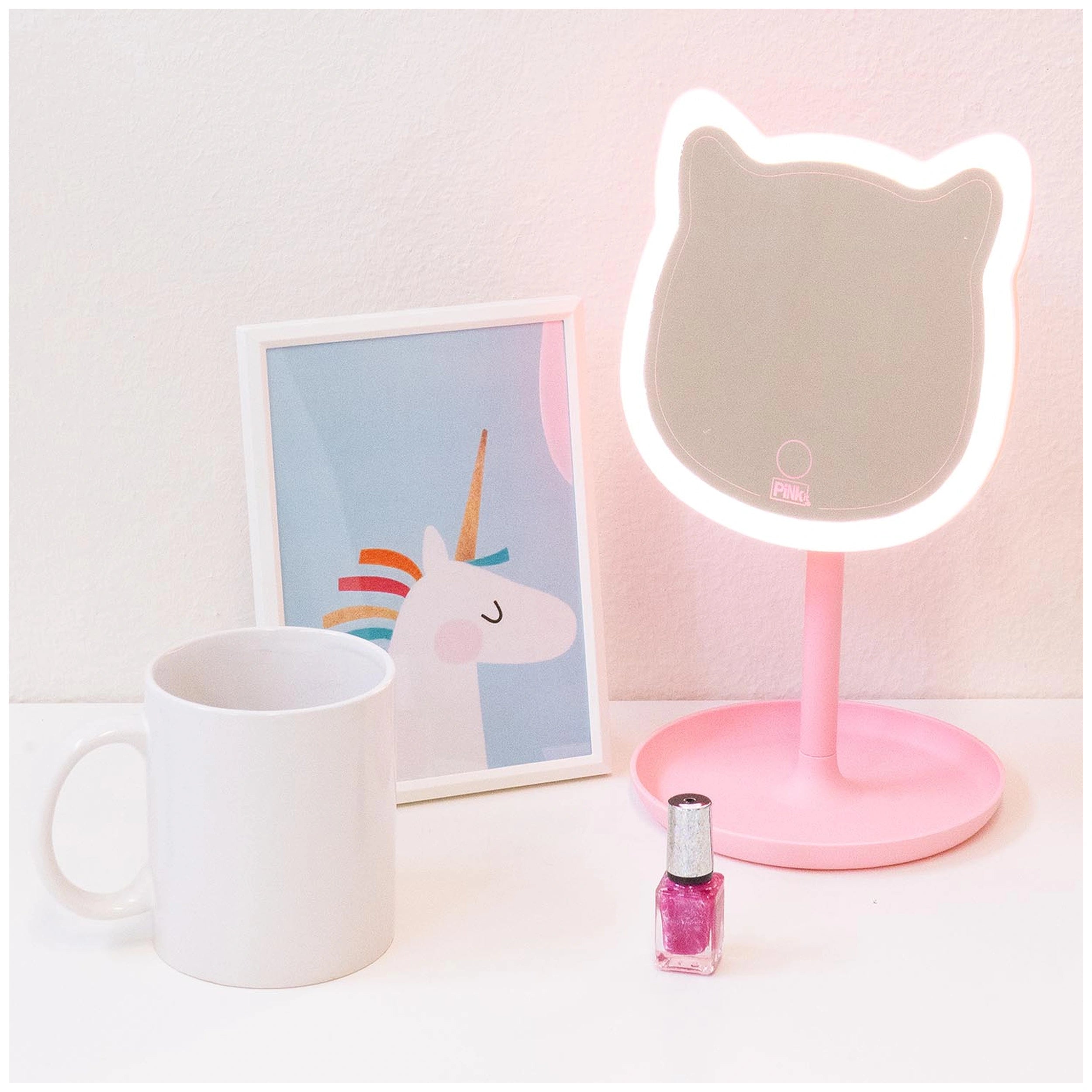 Introducing the NICE - Pink It Mirror, a stylish and functional addition to your makeup routine. This unique cat-shaped mirror features an integrated LED frame that illuminates your face, ensuring that you achieve the perfect makeup application every time. Designed with both aesthetics and practicality in mind, this mirror is not just a tool; it’s a statement piece that will enhance the decor of any bedroom or vanity space.