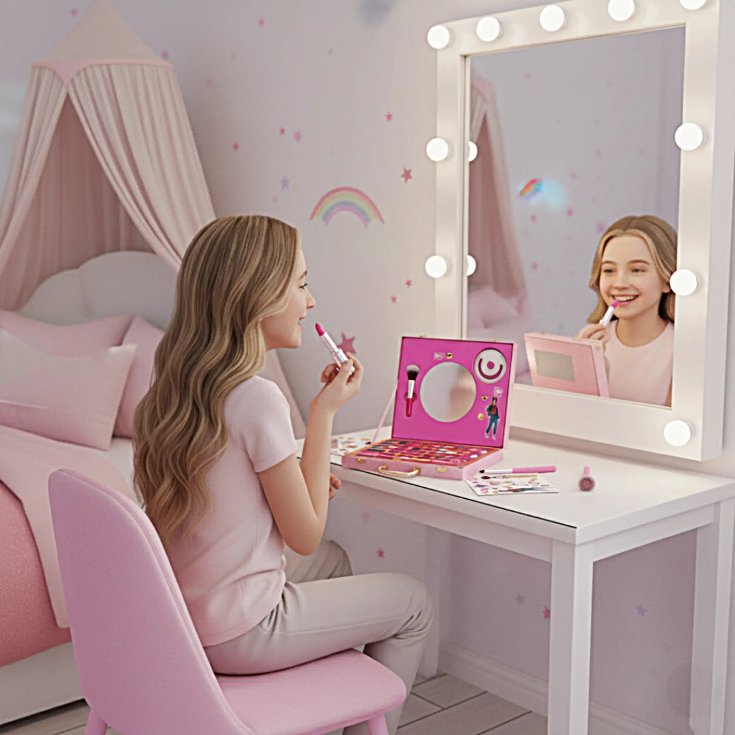 In conclusion, the Nice - Pink it Selfie Ring Suitcase - Makeup is more than just a beauty kit; it is an invitation to explore the world of makeup artistry. With its extensive range of products, innovative selfie ring flash, and commitment to safety, this suitcase is perfect for both beginners and seasoned makeup lovers. Don’t miss out on the opportunity to elevate your beauty game—order your Nice - Pink it Selfie Ring Suitcase today and unleash your inner artist!
