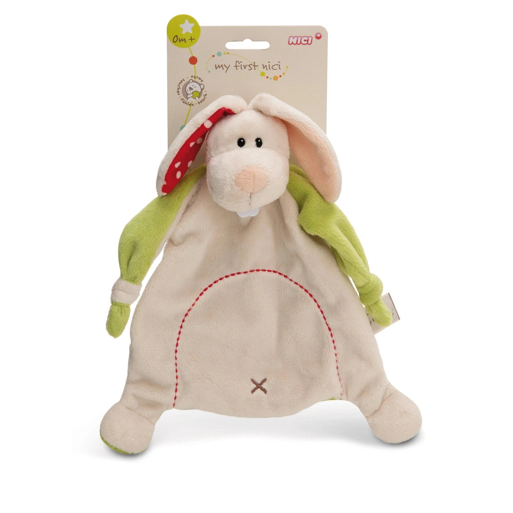Introducing the NICI - My First NICI - Cuddle Cloth Bunny Tilli, a delightful companion designed to provide comfort and joy to your little one. This charming stuffed animal measures 25 x 25 cm and is crafted from the highest quality NICI plush, ensuring a soft and huggable experience for babies. Tilli the bunny is not just a toy; it’s a comforting presence that can help soothe your child during nap times or playtime.