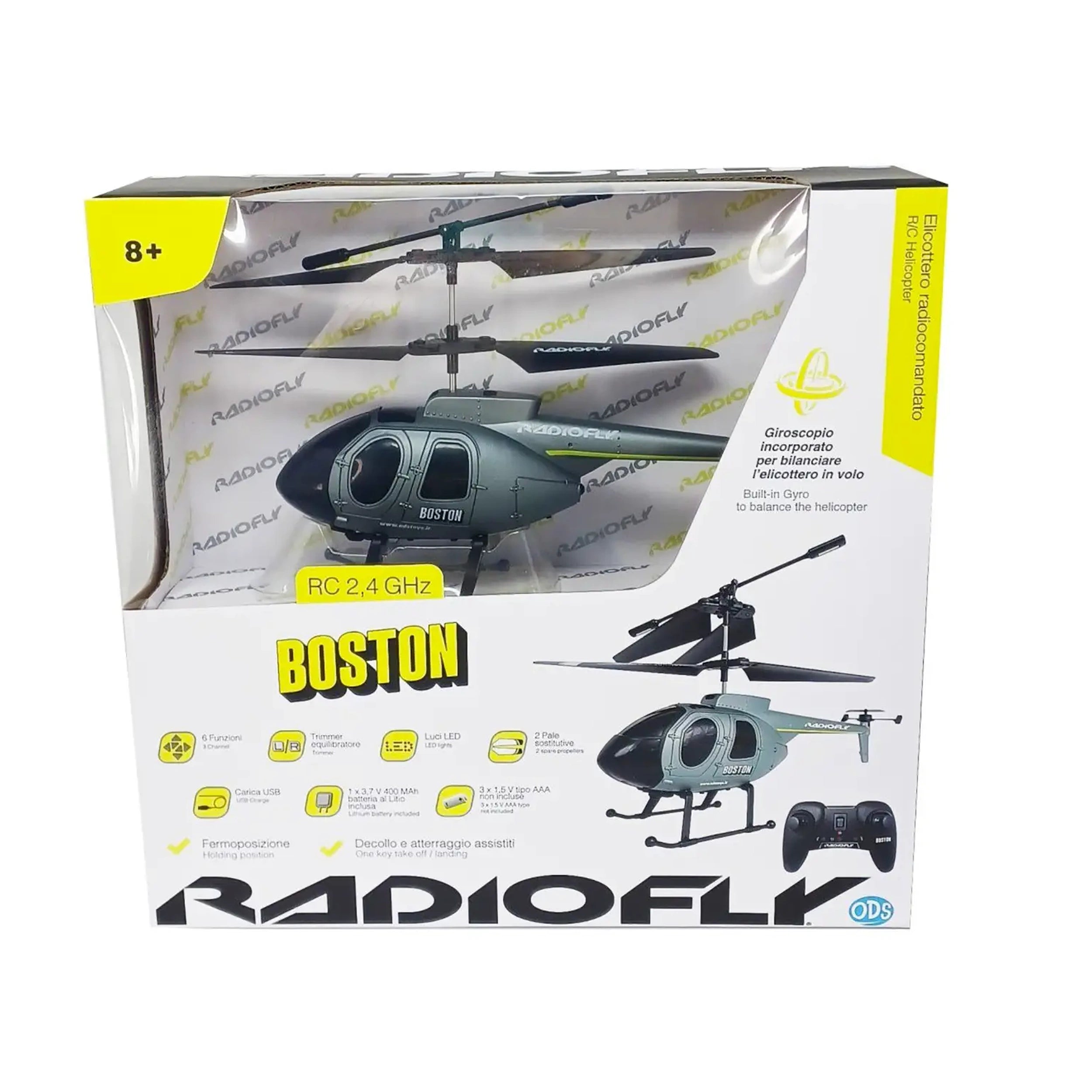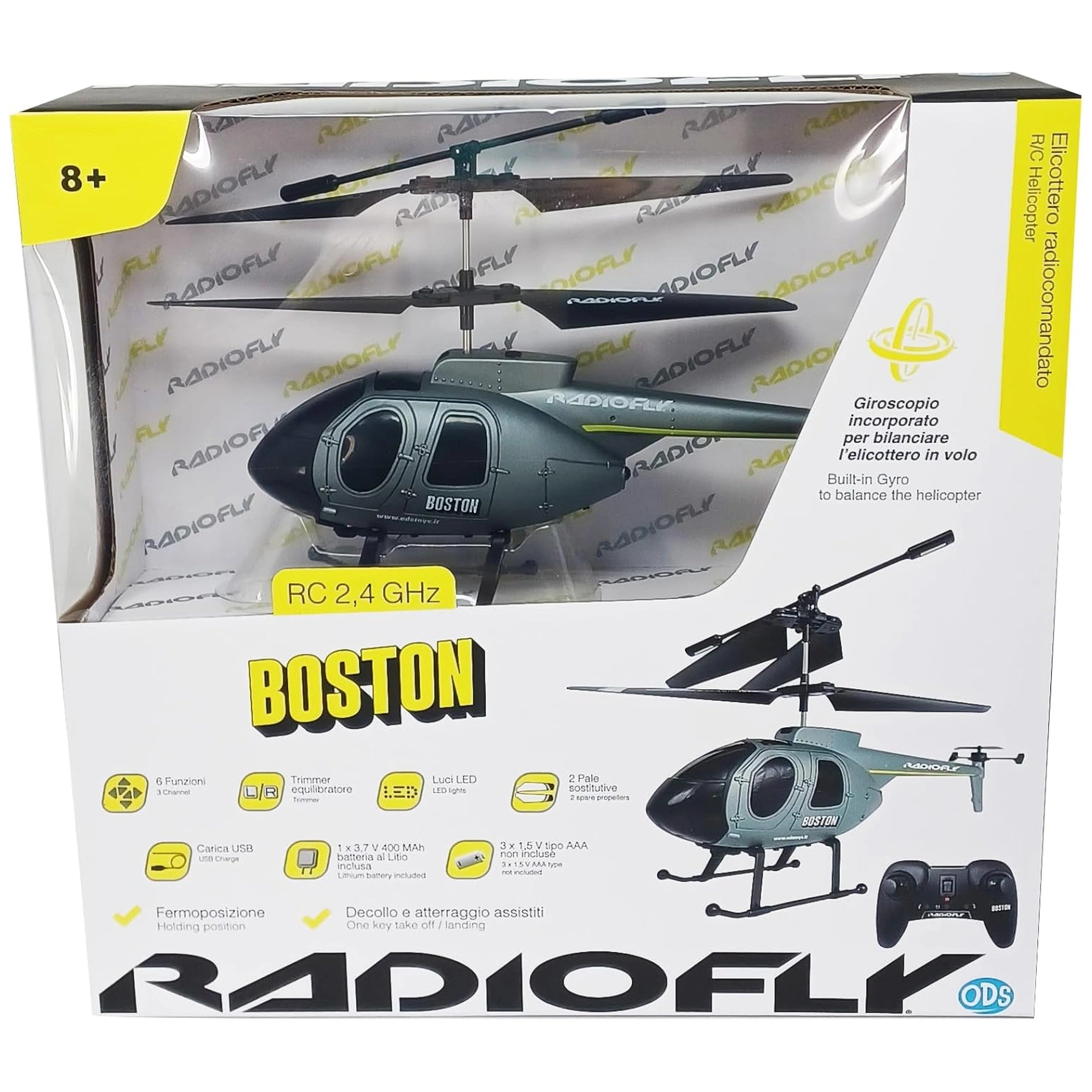 Introducing the RADIOFLY BOSTON RC Helicopter, a remarkable play vehicle designed to elevate your flying experience. This state-of-the-art remote-controlled helicopter is perfect for enthusiasts aged eight and above, offering a blend of stability, ease of use, and advanced features that make it an ideal choice for both beginners and seasoned pilots alike. With its sleek design and impressive capabilities, the BOSTON is set to become your go-to flying companion.