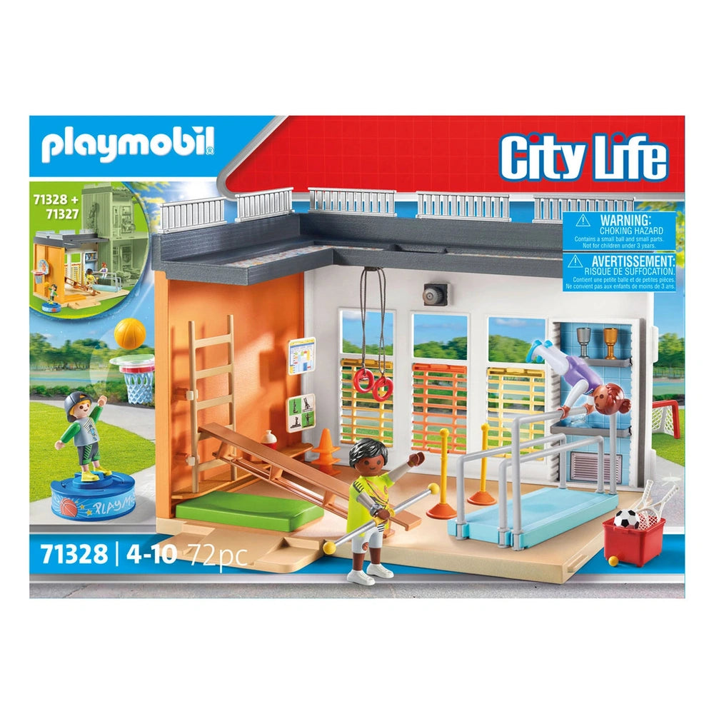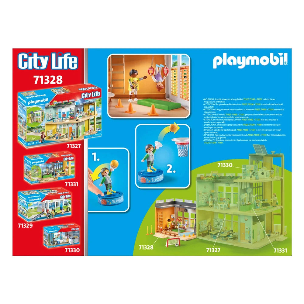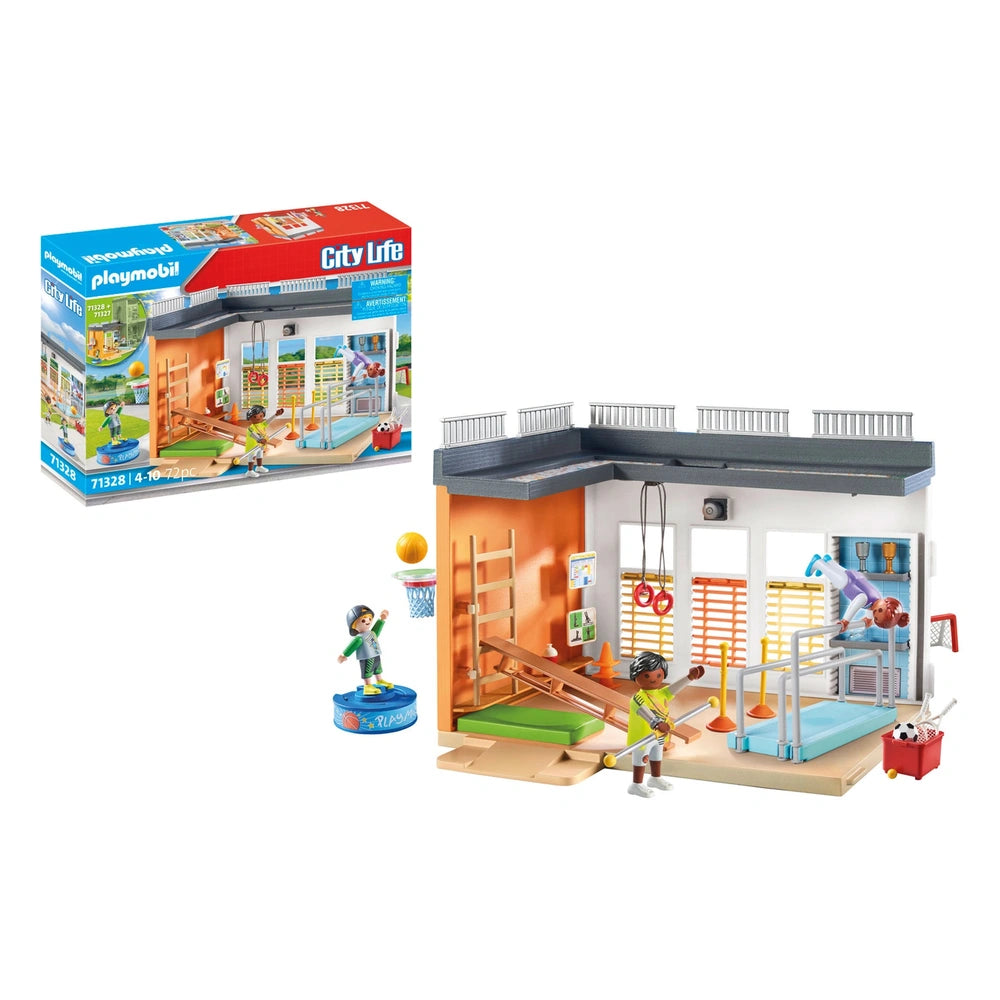 Introducing the Playmobil City Life Gym Expansion - 71328, an exciting addition designed to enhance the Big School (71327) experience. This gym extension invites children to engage in imaginative play while exploring the world of fitness and sports. With its vibrant design and attention to detail, this expansion is perfect for young enthusiasts eager to create their own active scenarios.
