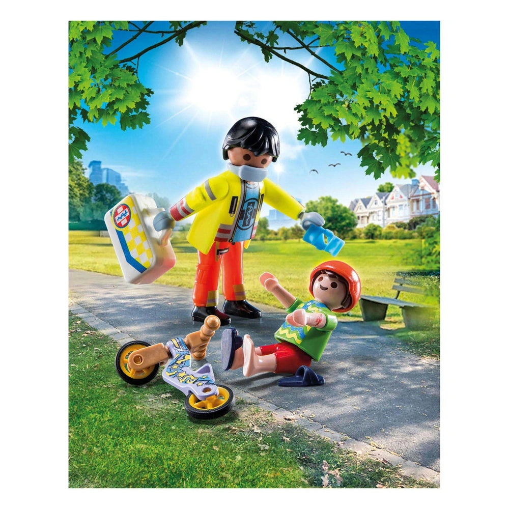 Introducing the Playmobil City Life Nurse With Patient - 71245, a delightful and engaging toy set designed to inspire imaginative play while teaching children the importance of care and compassion. This set features a dedicated paramedic who is always on standby to provide first aid, ensuring that young ones learn about health and safety in a fun and interactive way. With its vibrant colors and detailed accessories, this toy set is perfect for children aged four and above, making it an ideal gift for budding caregivers and adventurers alike.