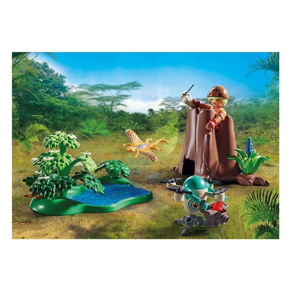 At the heart of this playset is the observation station, cleverly hidden within a hollow tree trunk. Here, a dedicated dinosaur researcher closely monitors the Dimorphodon as it gracefully searches for food. The set includes a flexible drone equipped with a camera, allowing for close-up shots of the magnificent flying reptile without disturbing its natural behavior. This unique feature not only enhances the play experience but also introduces children to the concept of wildlife observation and research.