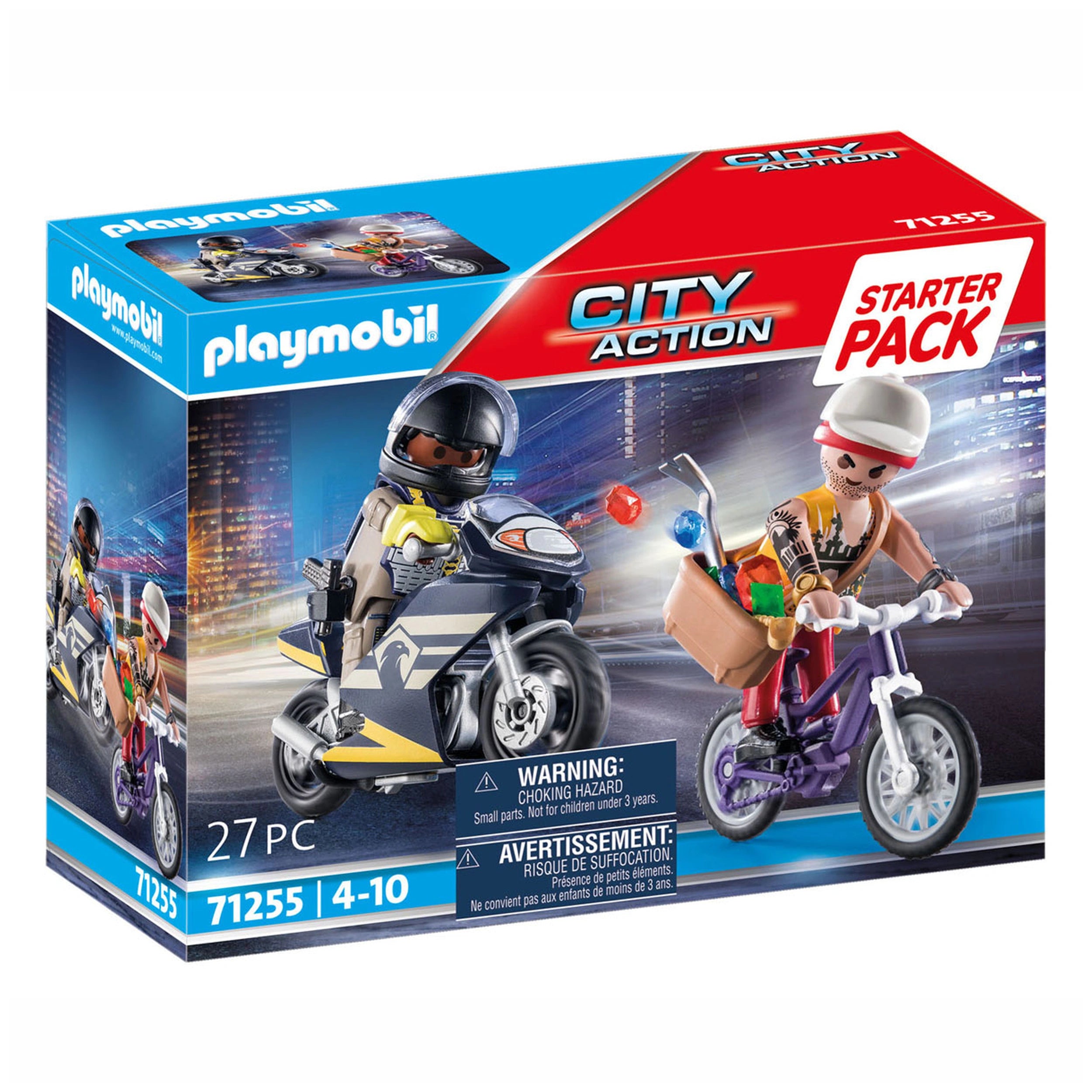 Included in the Playmobil Starter Pack are two intricately designed figures, a sleek motorcycle, and a bicycle, along with essential accessories like jewelry and other extras. Each component is crafted with attention to detail, ensuring that children can immerse themselves in the action. The figures are articulated, allowing for a range of poses and interactions, making the play experience even more engaging.