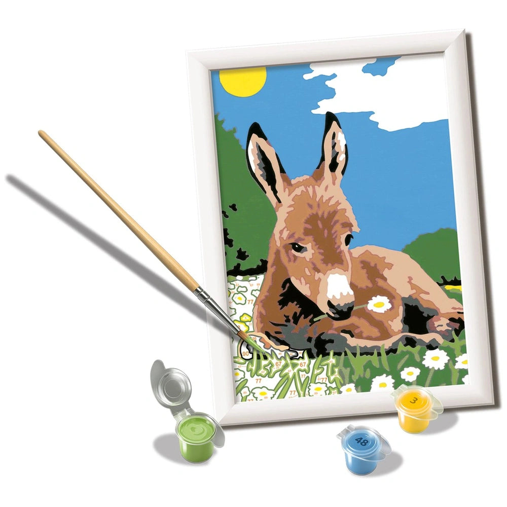 Introducing the Ravensburger CreArt Little Donkey Painting By Numbers set, a delightful arts and crafts experience designed to awaken the artist within everyone. This engaging painting kit is perfect for both beginners and seasoned artists, offering a unique opportunity to create a beautiful masterpiece with ease. With its user-friendly approach, this set encourages creativity and self-expression, making it an ideal choice for children aged 9 and above.