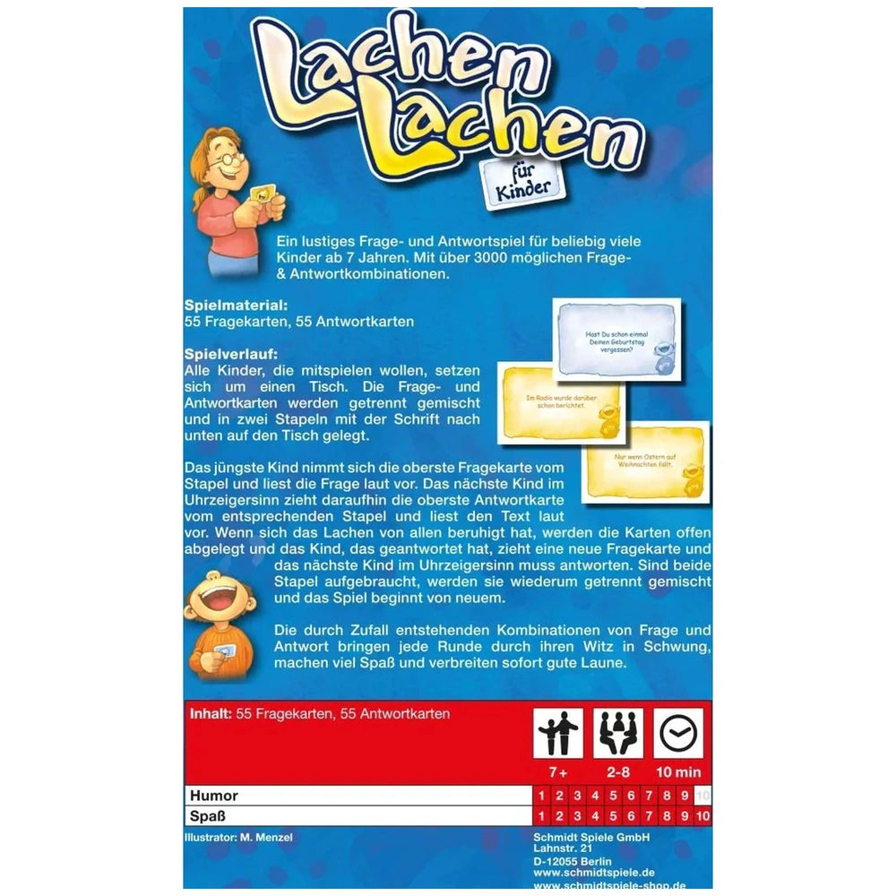 Introducing Schmidt Spiele's "Laughter Laughter" – the ultimate children's travel board game designed to spark joy and laughter among young players. This engaging game is perfect for family outings, road trips, or any gathering where children can come together to share fun and silly moments. With its unique premise, "Laughter Laughter" encourages creativity and humor, making it a delightful addition to any child's game collection.