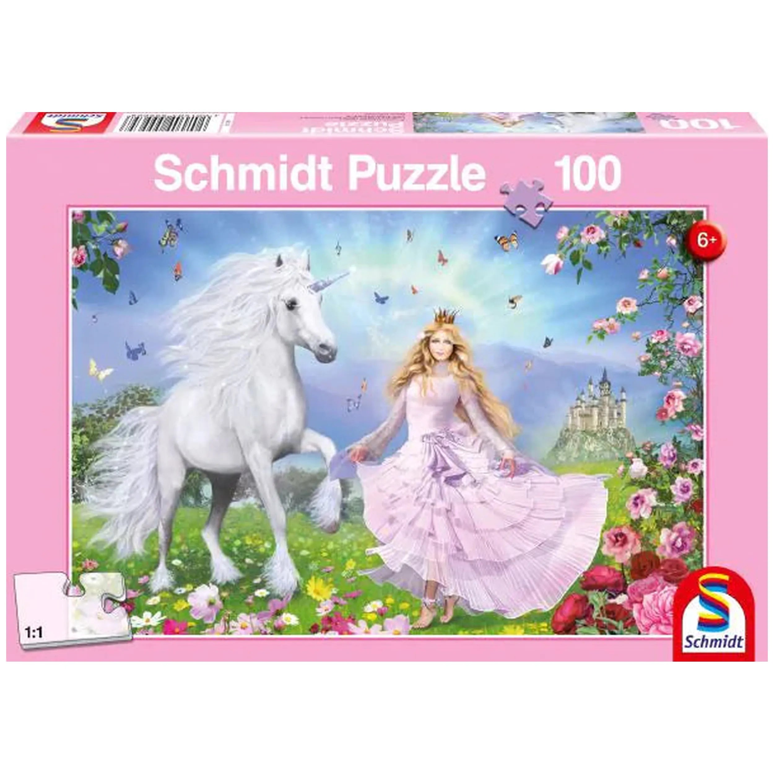 Introducing the Schmidt Spiele - Princess of Unicorns 100 Pcs Puzzle, a delightful jigsaw puzzle that invites you to embark on an enchanting adventure filled with whimsy and wonder. This beautifully crafted puzzle features a stunning illustration of a majestic white unicorn alongside a graceful princess, set against a backdrop of vibrant flowers and a whimsical castle. Perfectly designed for both children and adults, this 100-piece puzzle offers an engaging challenge that promises hours of entertainment and imaginative exploration.
