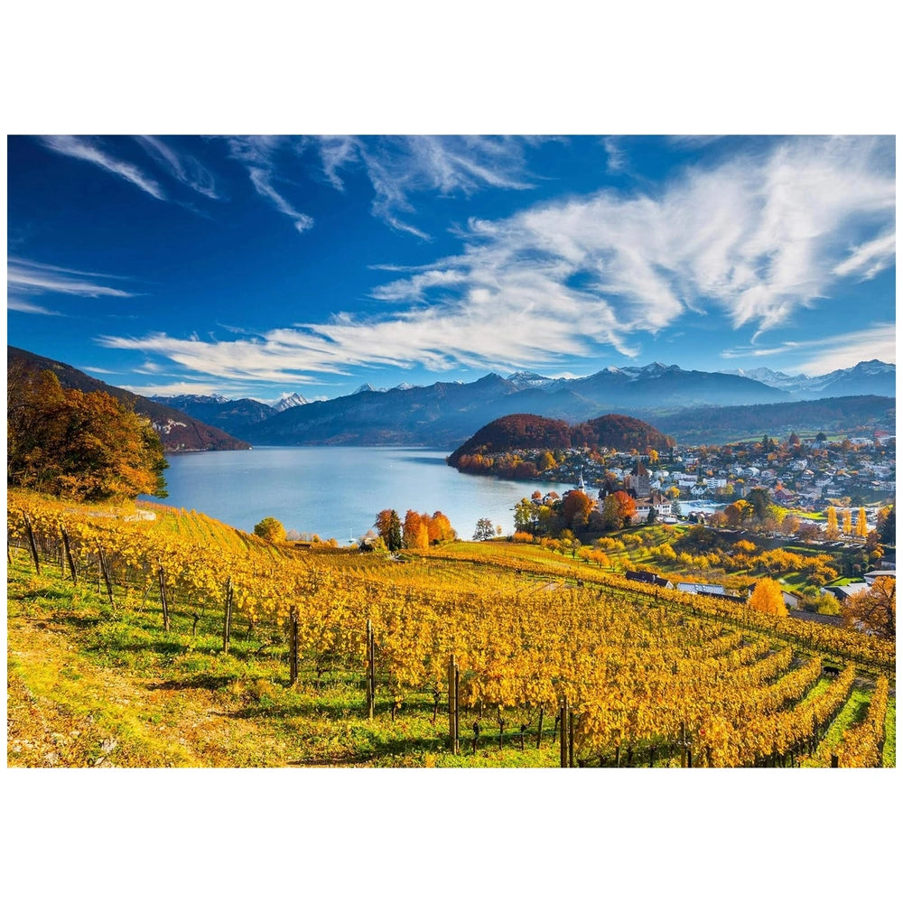 Introducing the Schmidt Spiele - Vineyard Vista 2000-Piece Puzzle, a captivating journey into the heart of nature's beauty. This exquisite jigsaw puzzle invites you to immerse yourself in a stunning panoramic landscape that features a picturesque vineyard, a serene lake, and majestic mountains. With every piece you connect, you will experience the vibrant golden hues of the vineyard, the tranquil blues of the lake, and the awe-inspiring peaks that create a visual feast for the eyes. This puzzle is not just a pastime; it’s an exploration of art and nature combined.