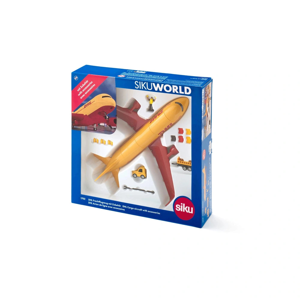 Introducing the Siku - DHL Cargo Aircraft with Accessories, a meticulously crafted toy playset that brings the excitement of logistics and aviation right into your child's playtime. This engaging set is designed for young enthusiasts who dream of soaring through the skies and managing cargo operations. With its vibrant DHL branding and realistic features, this playset not only entertains but also educates children about the world of transportation and logistics.